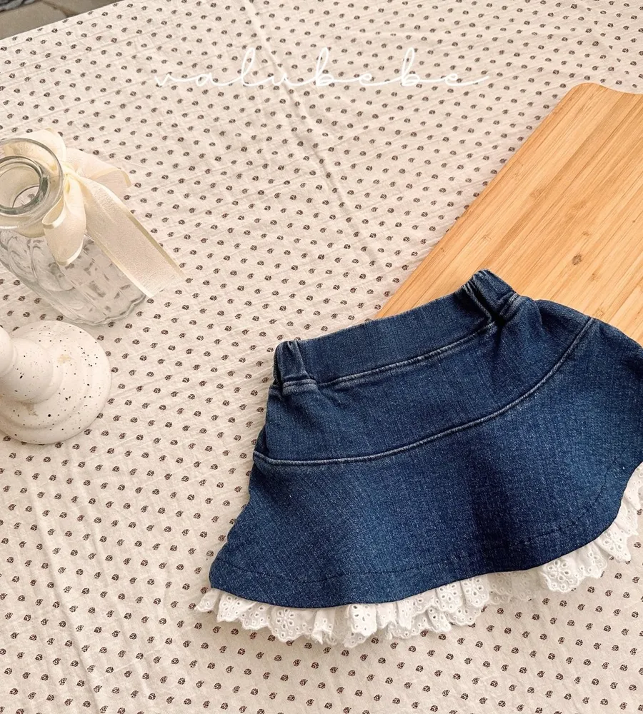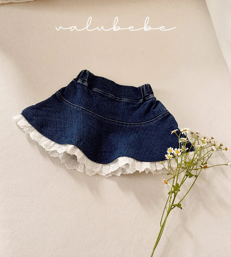26'春〡valubebe〡蕾絲花邊牛仔裙