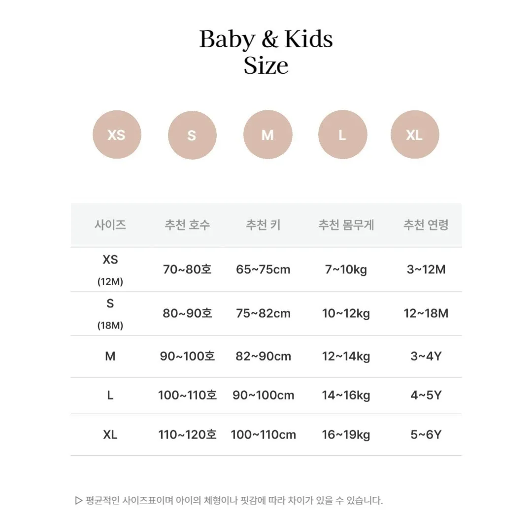 *尺寸表僅為品牌提供參考,實際穿著效果因孩子身型不同而異*