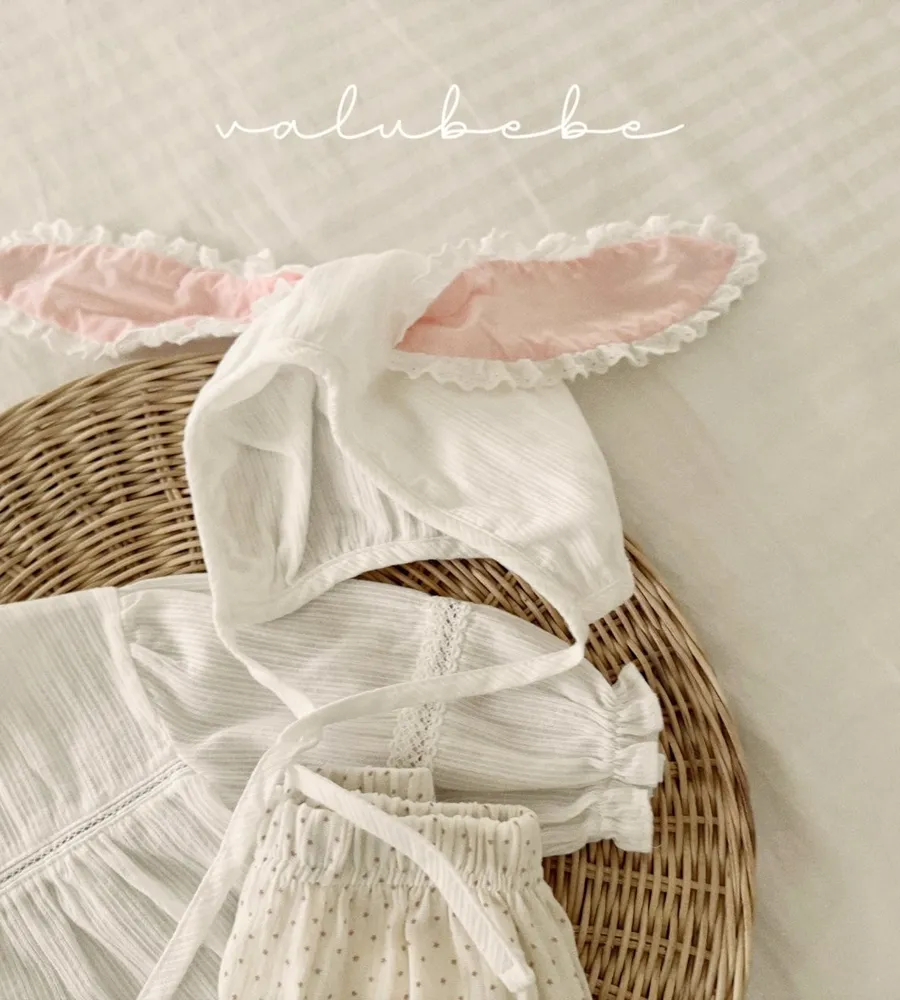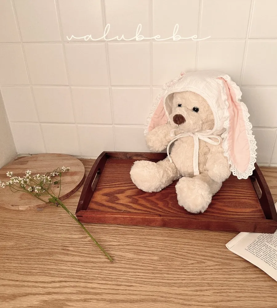 26'春〡valubebe〡蕾絲花邊兔耳綁帶帽