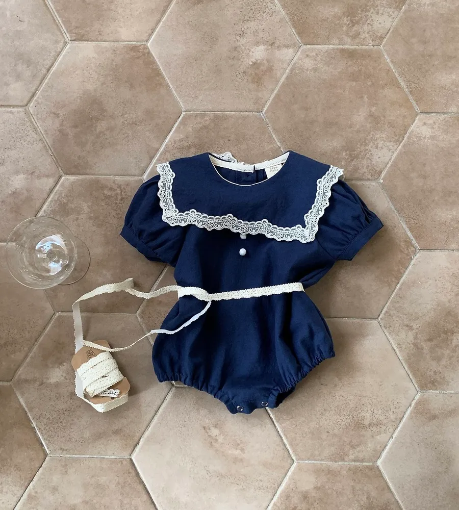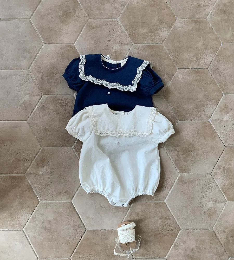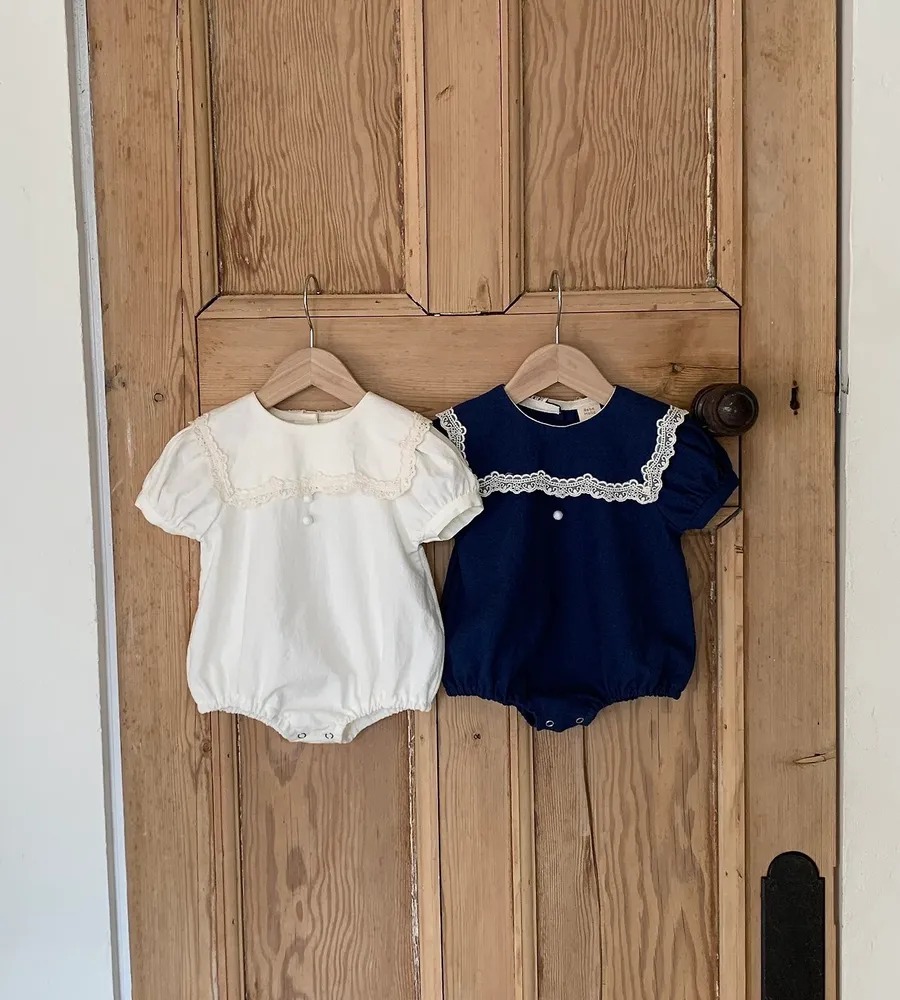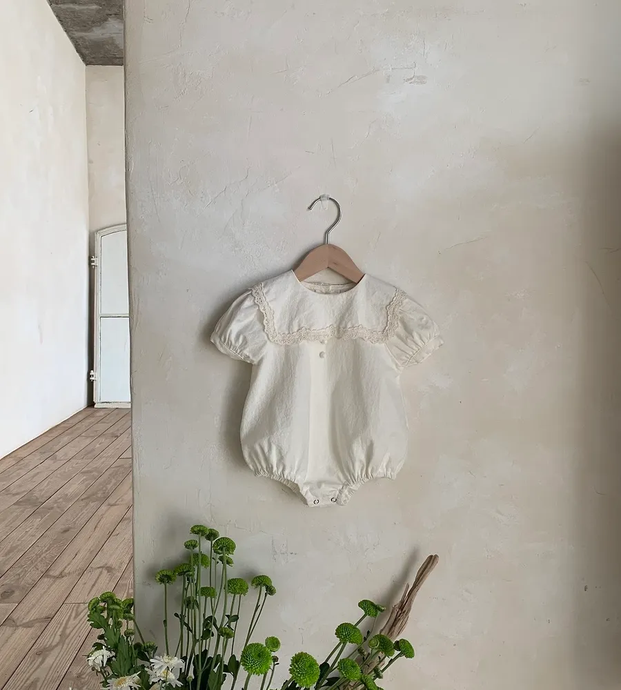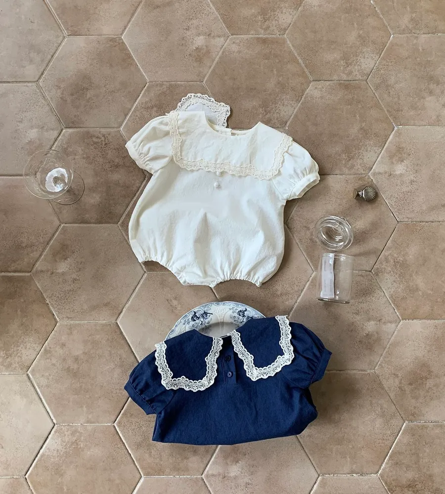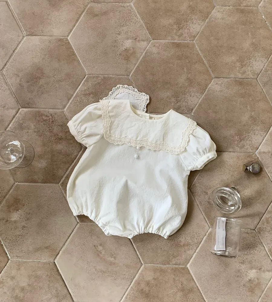 26'夏〡Bebeholic〡蕾絲包邊翻領珍珠扣包屁衣
