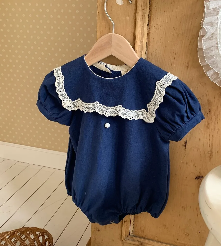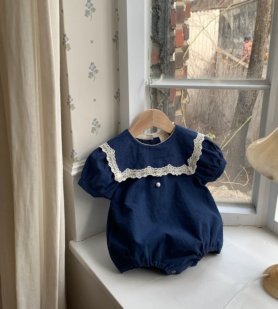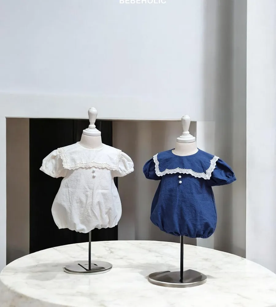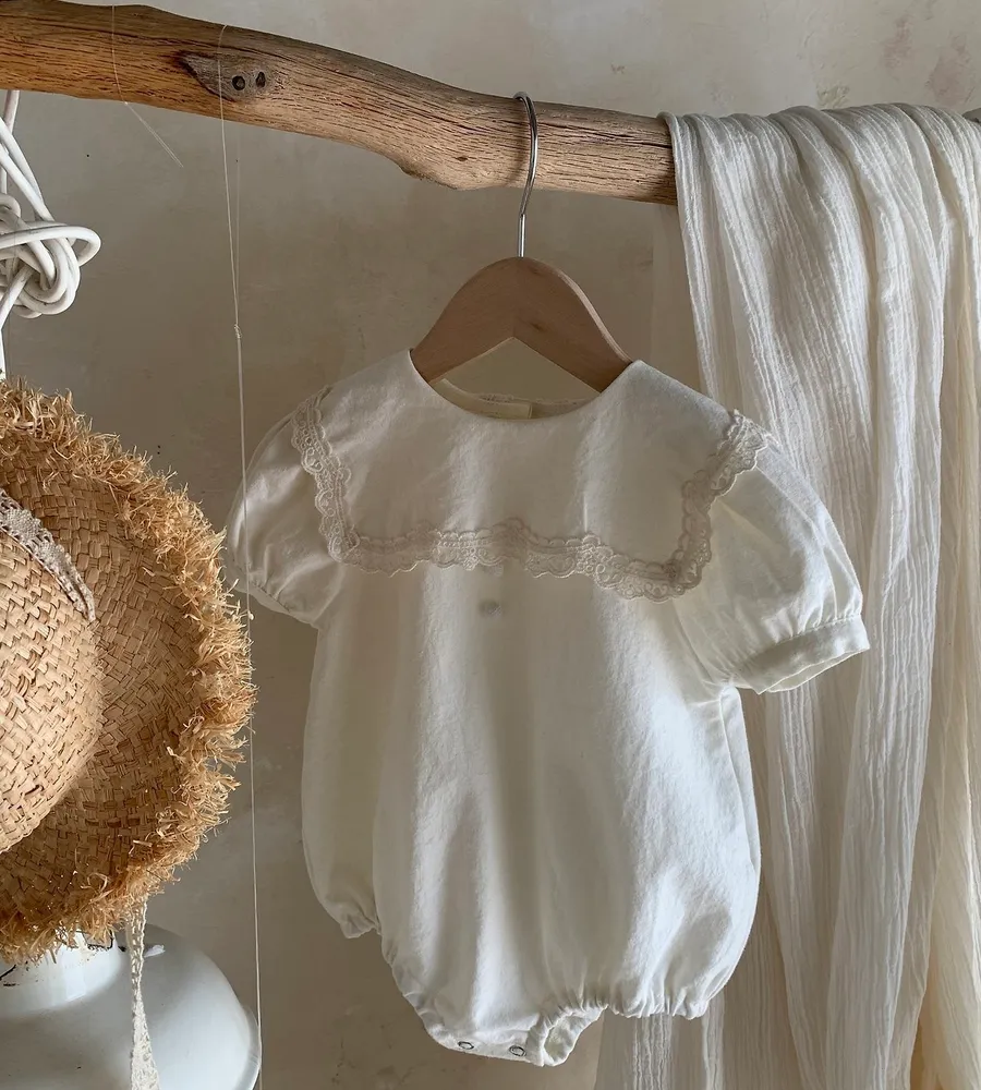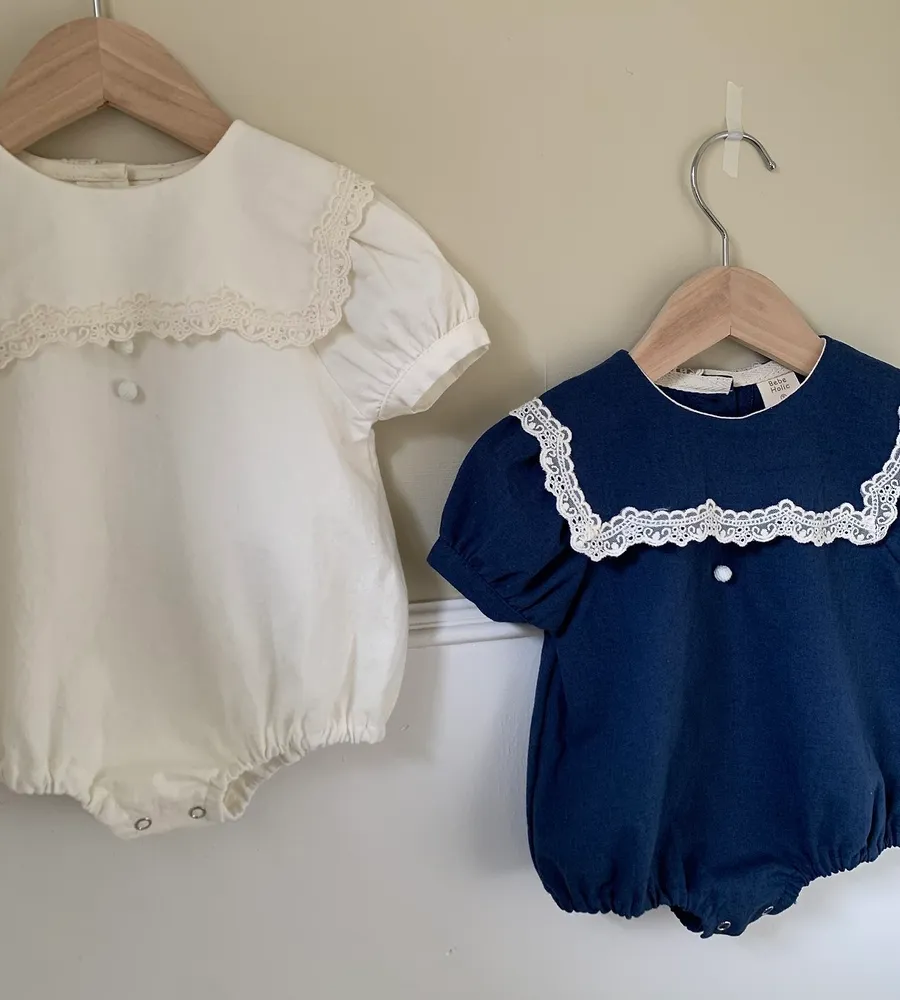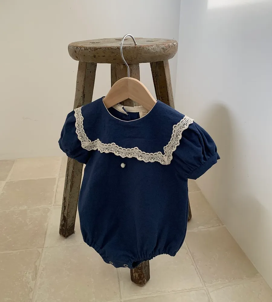 26'夏〡Bebeholic〡蕾絲包邊翻領珍珠扣包屁衣