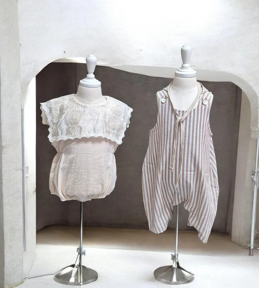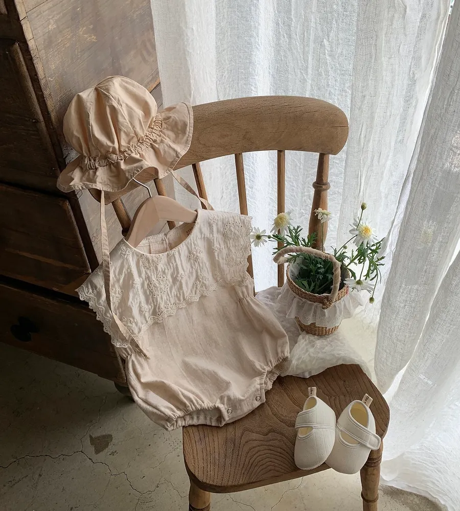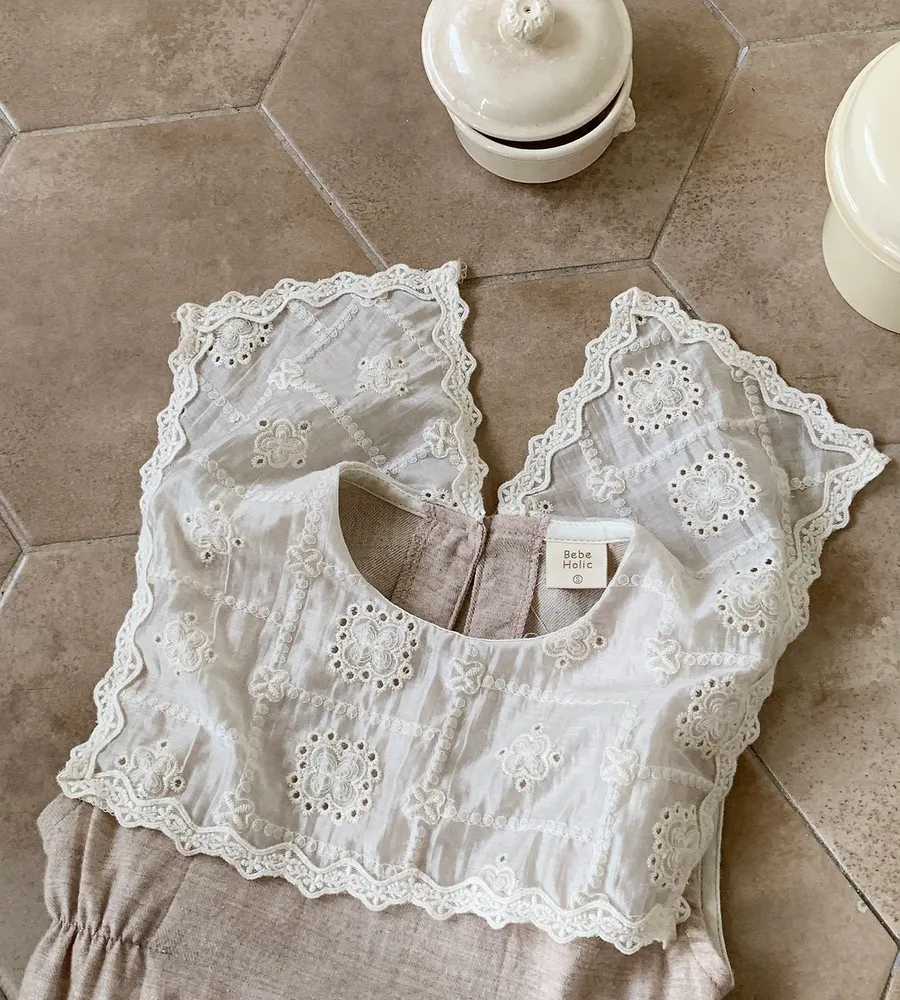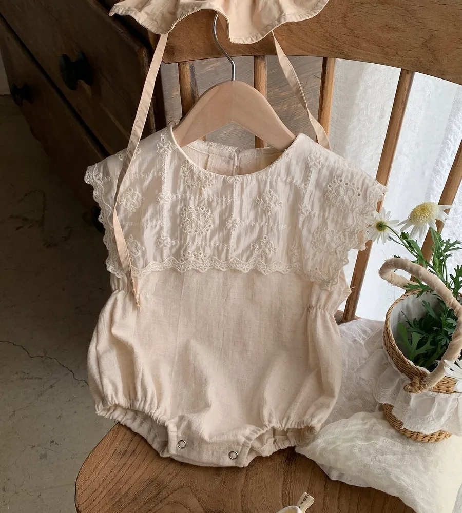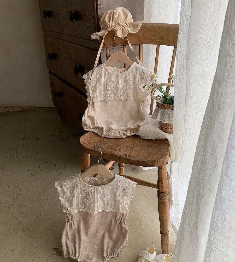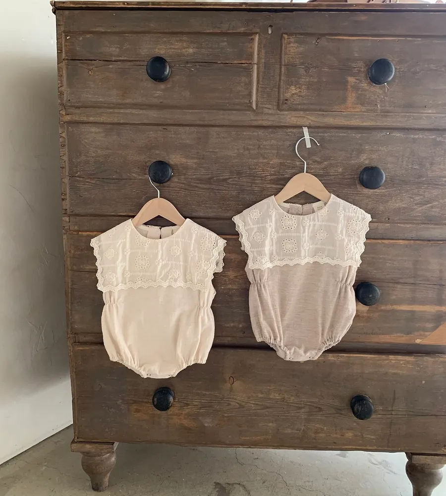 26'夏〡Bebeholic〡緹花拼接棉麻感包屁衣