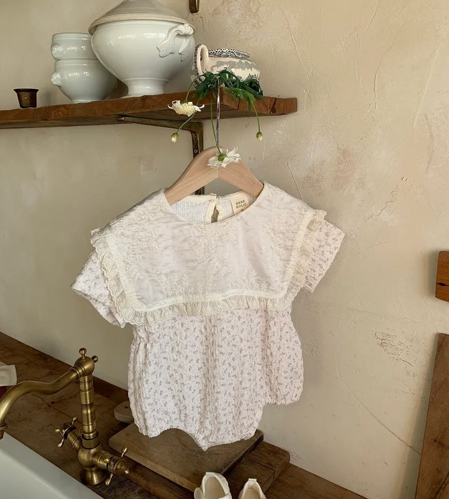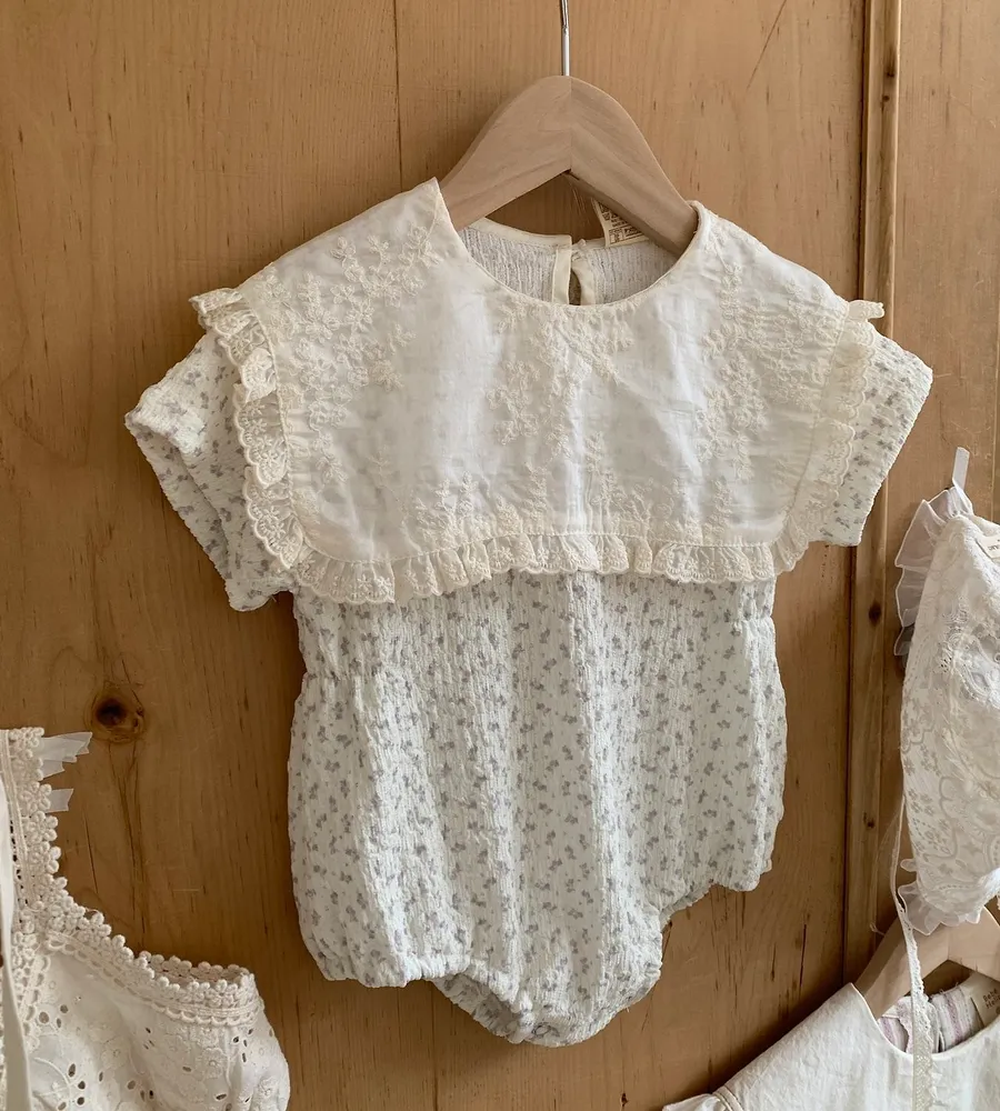 26'夏〡Bebeholic〡蕾絲緹花翻領花花包屁衣