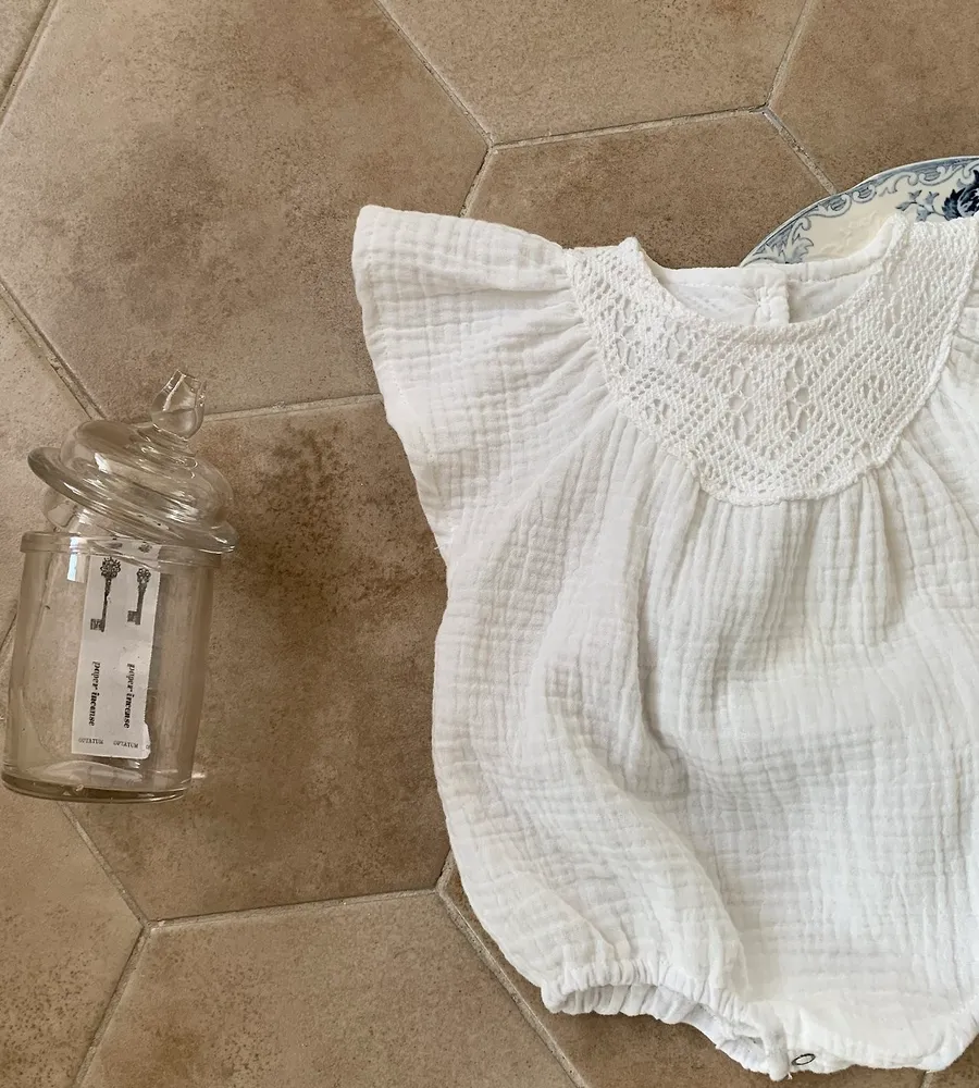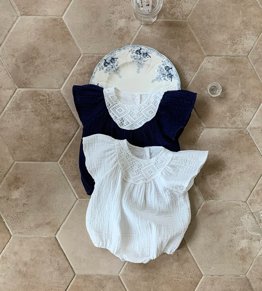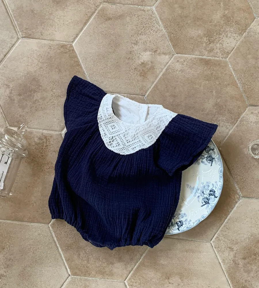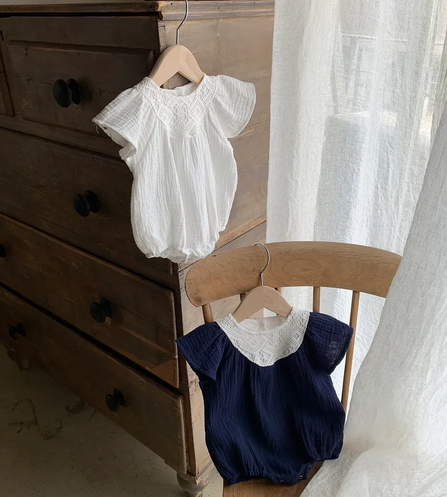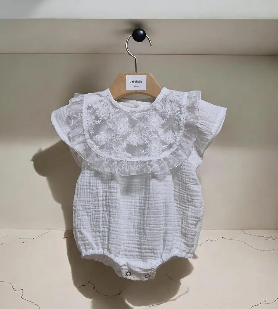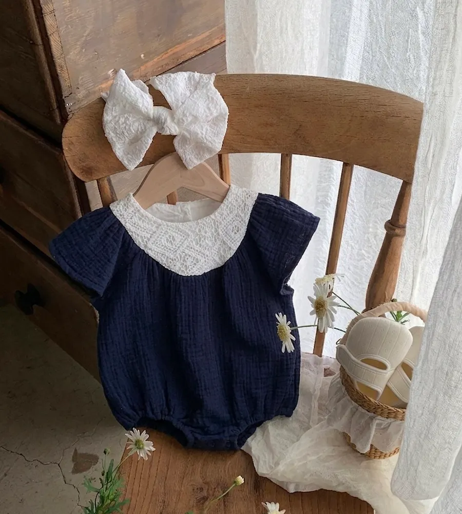 26'夏〡Bebeholic〡緹花拼接領紋理包屁衣