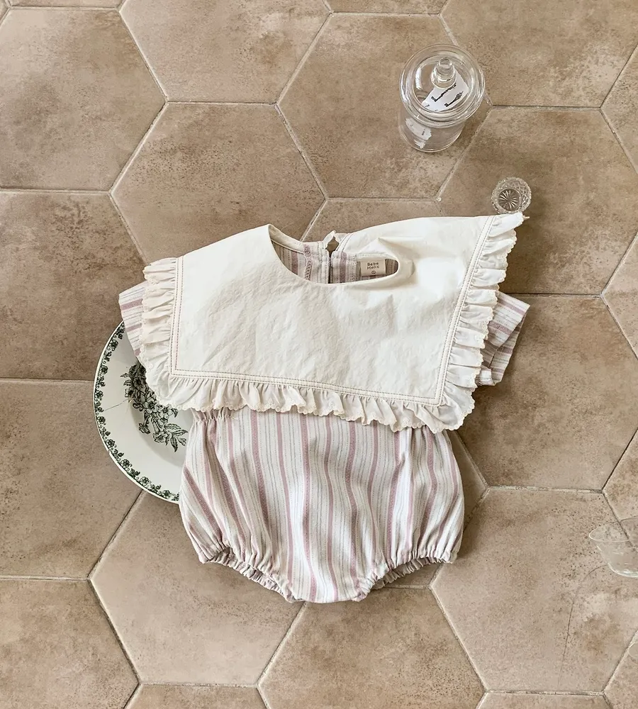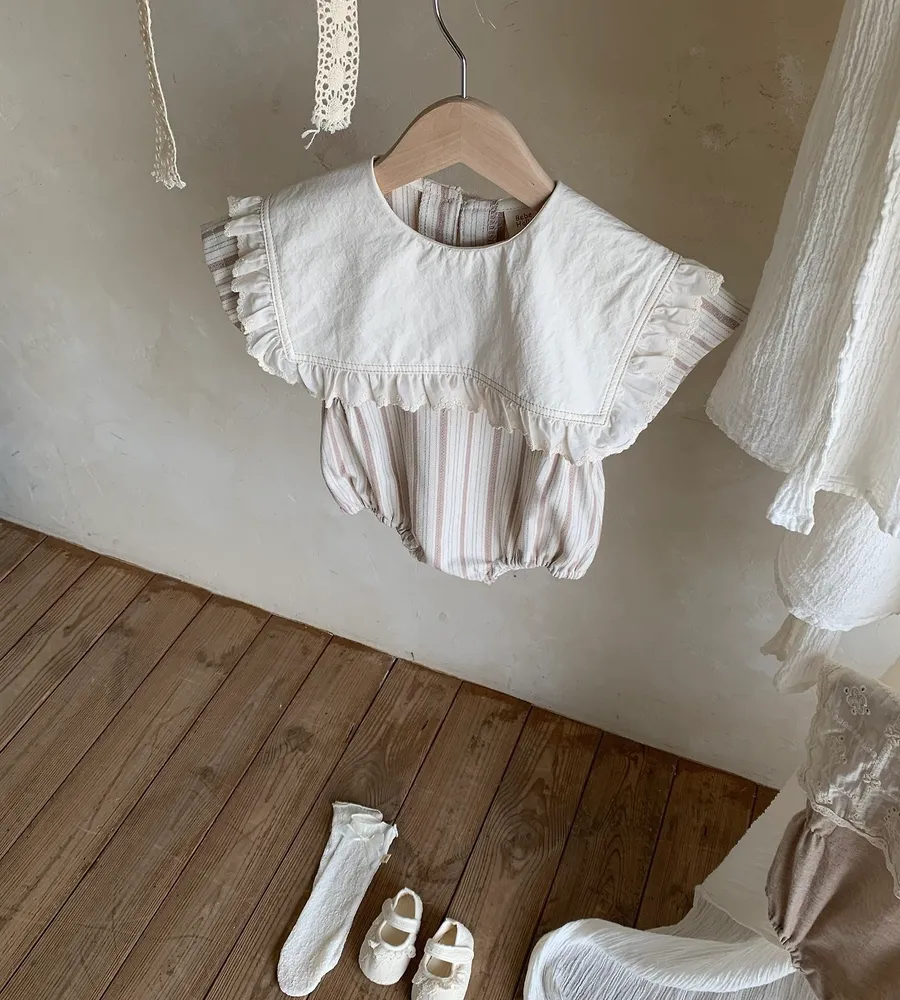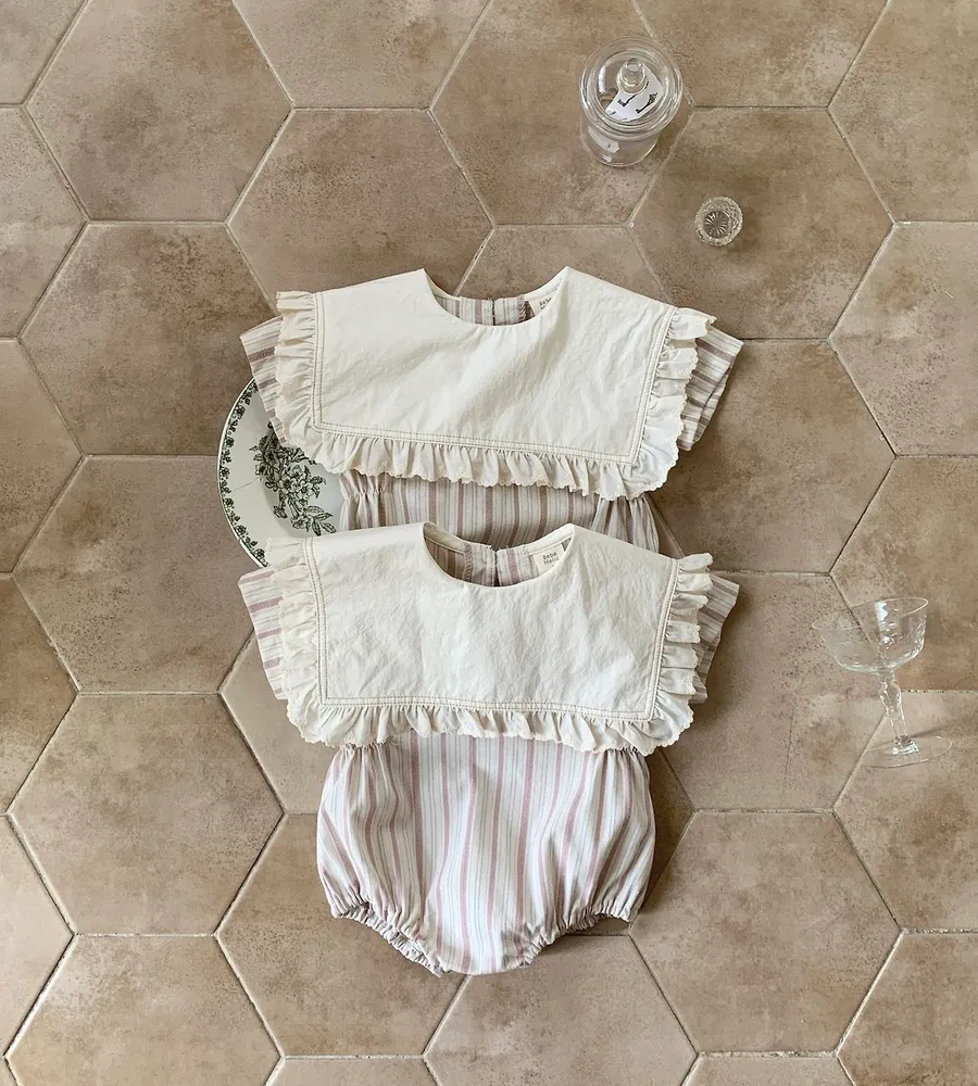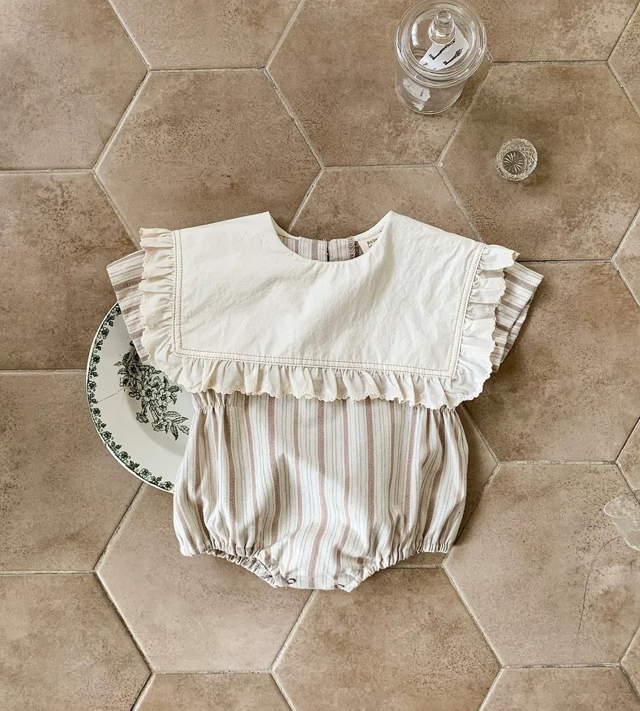 26'夏〡Bebeholic〡荷葉邊大片翻領直條紋包屁衣