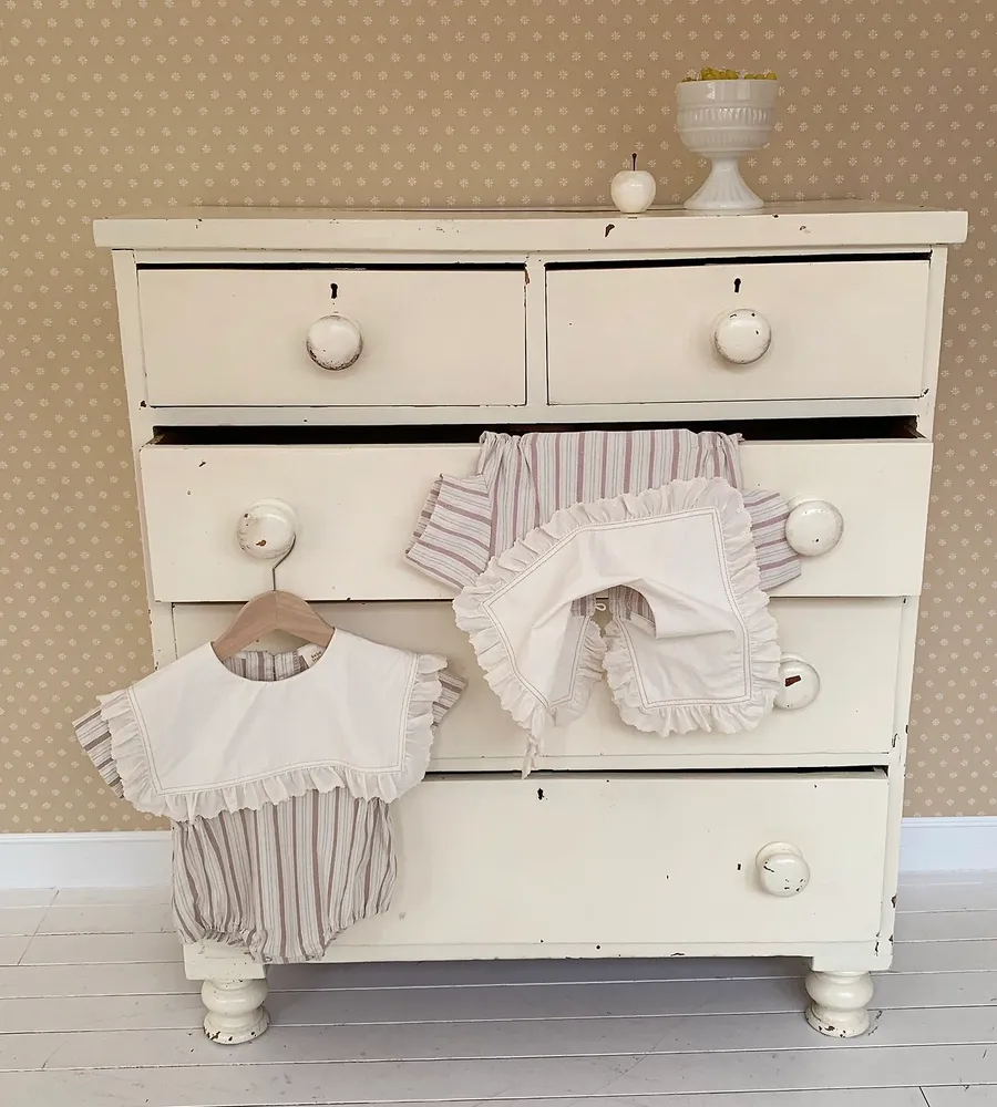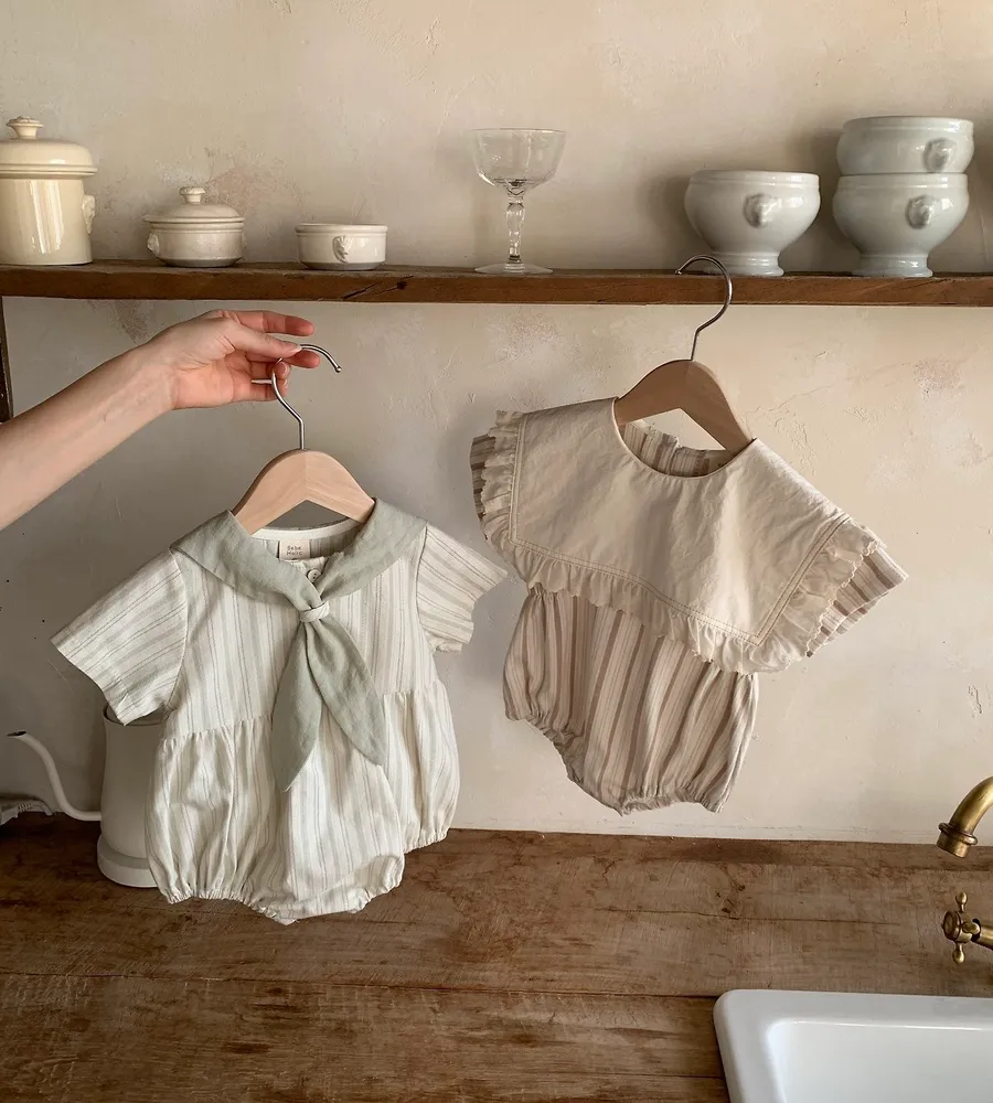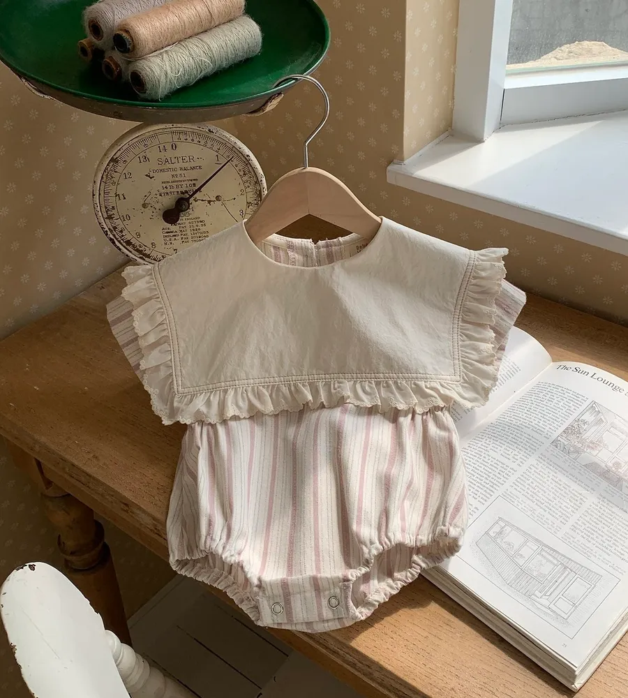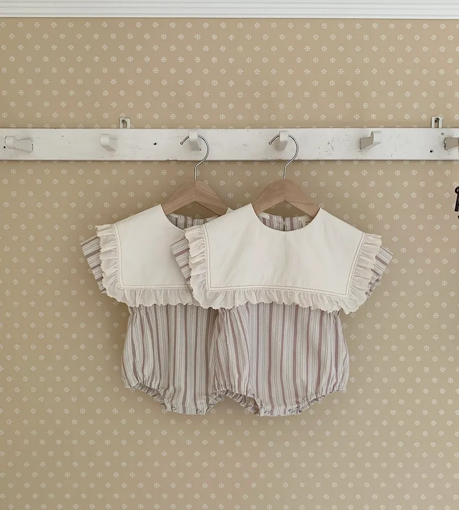 26'夏〡Bebeholic〡荷葉邊大片翻領直條紋包屁衣