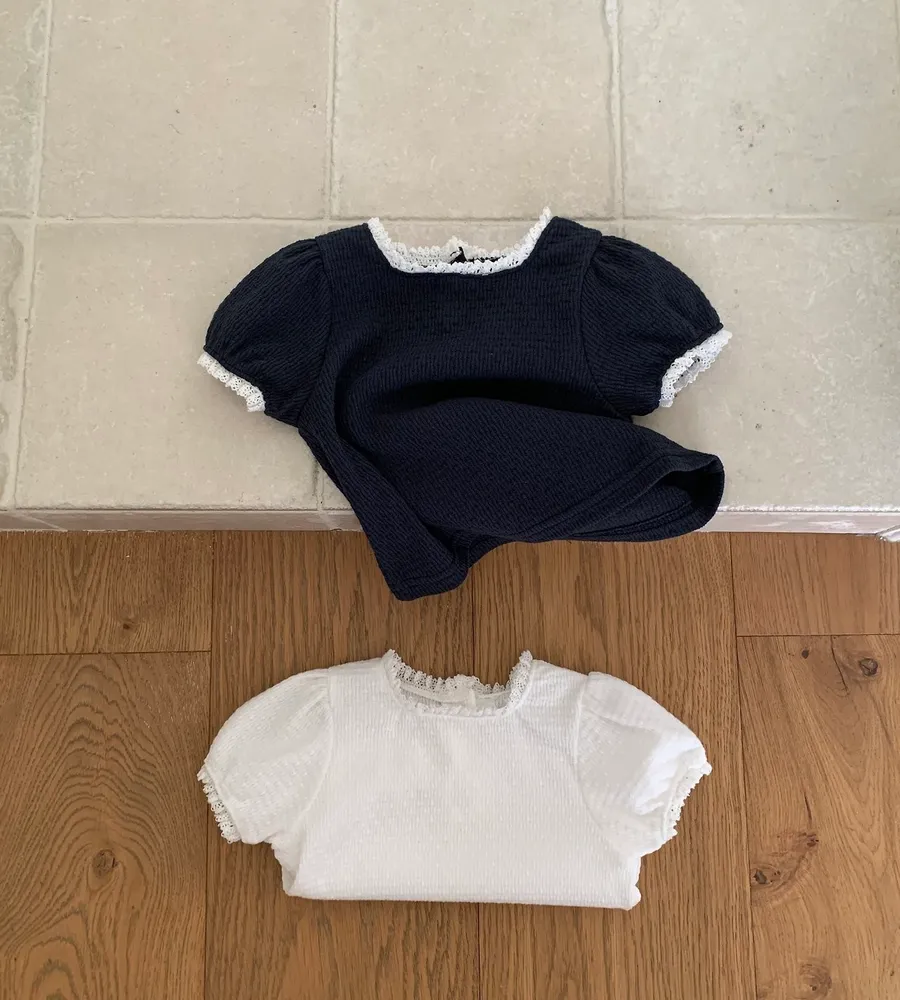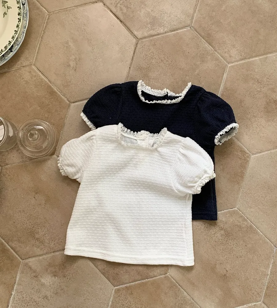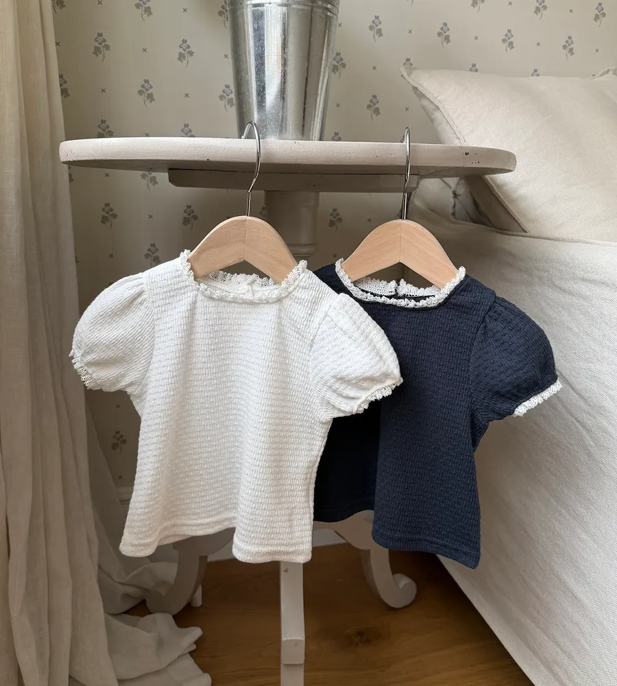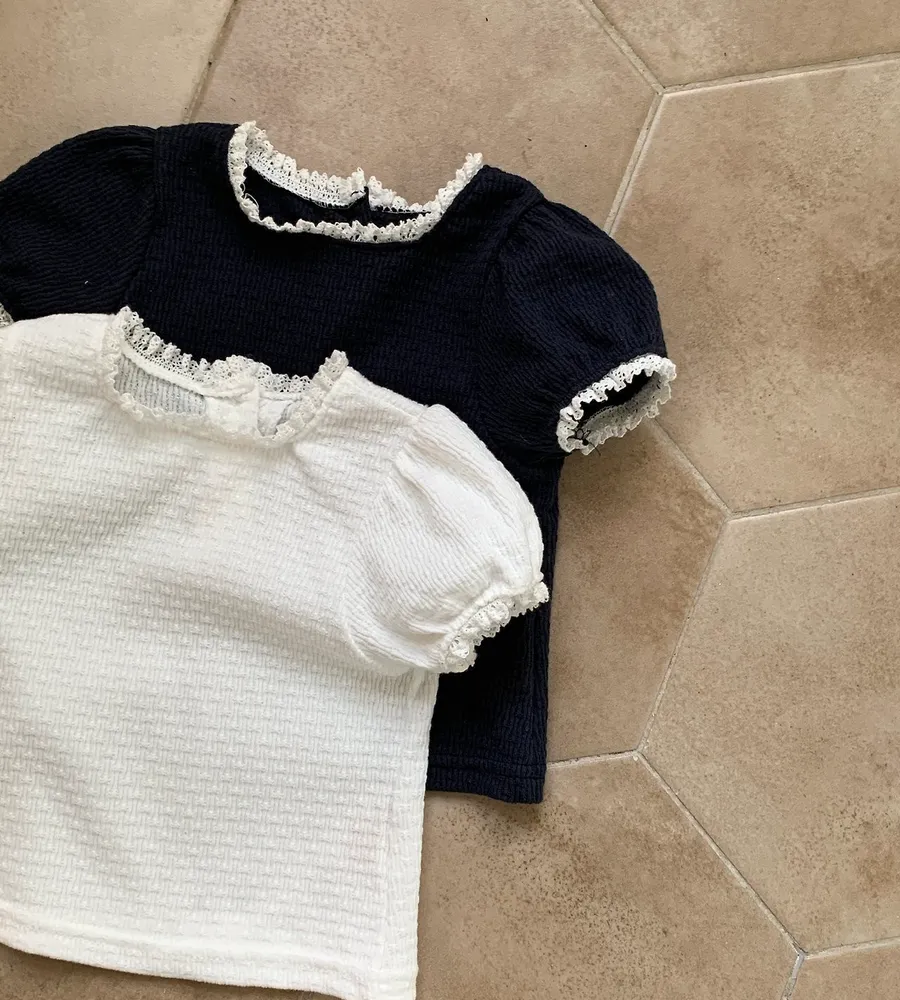 26'夏〡Bebeholic〡紋理蕾絲花邊公主袖上衣