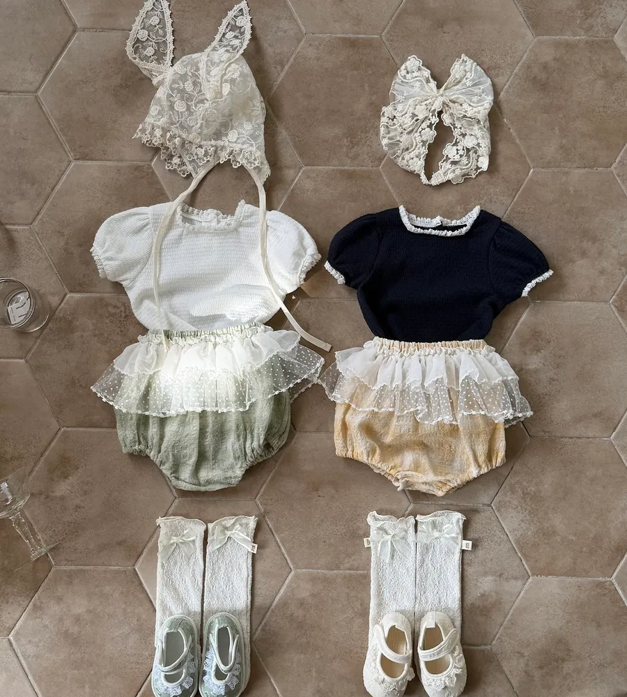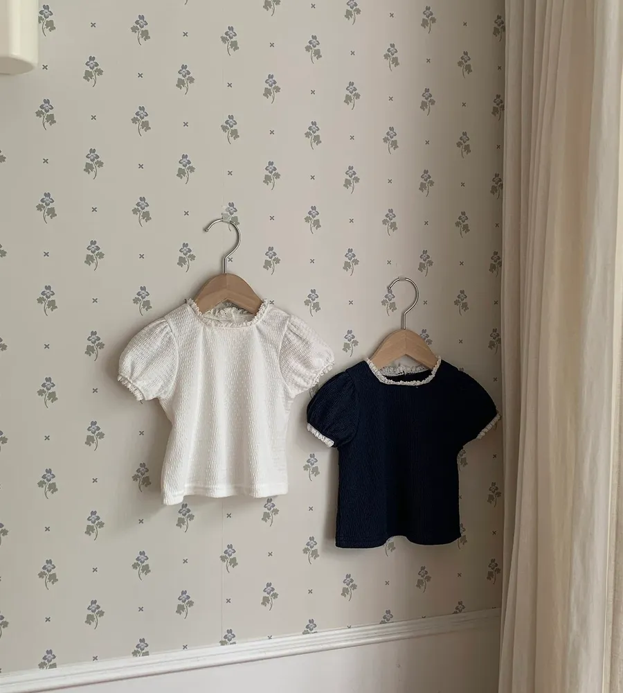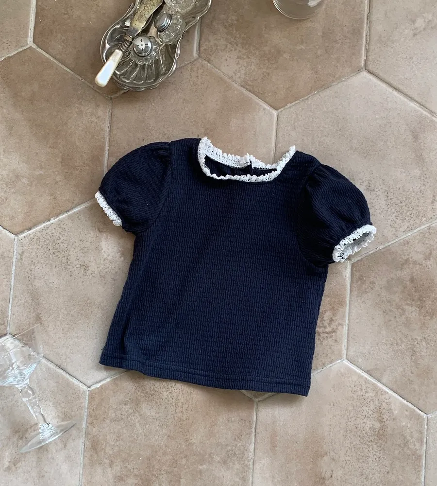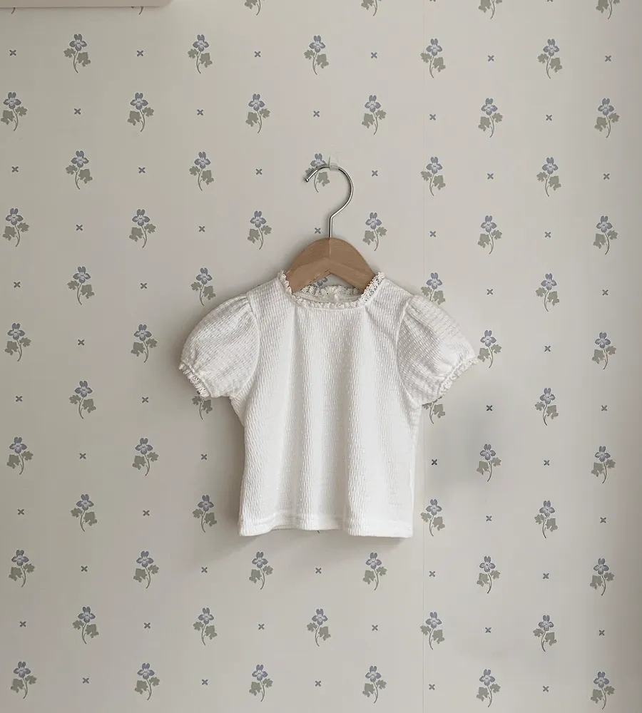 26'夏〡Bebeholic〡紋理蕾絲花邊公主袖上衣