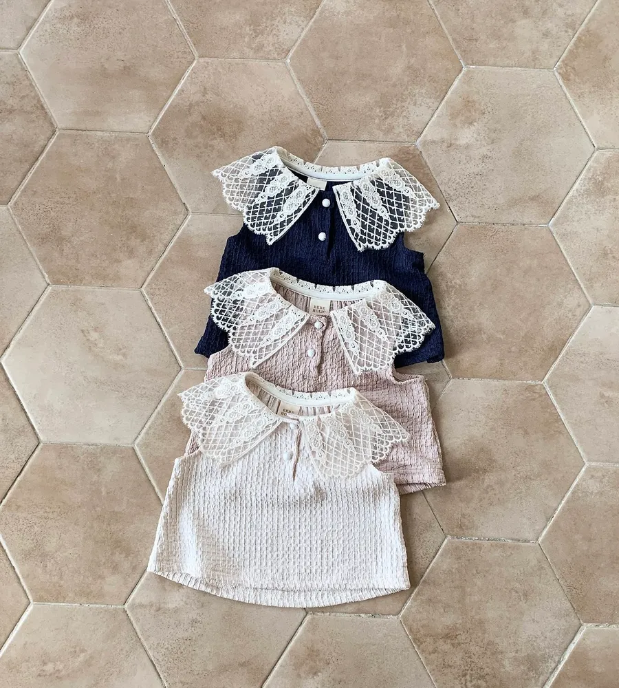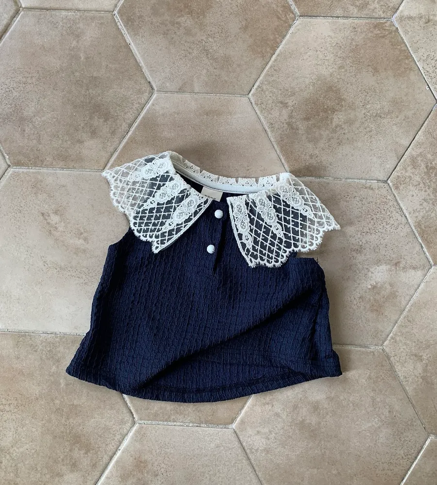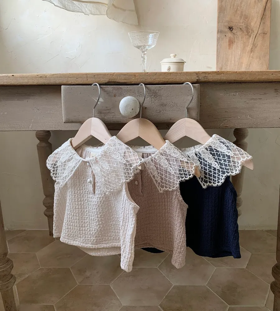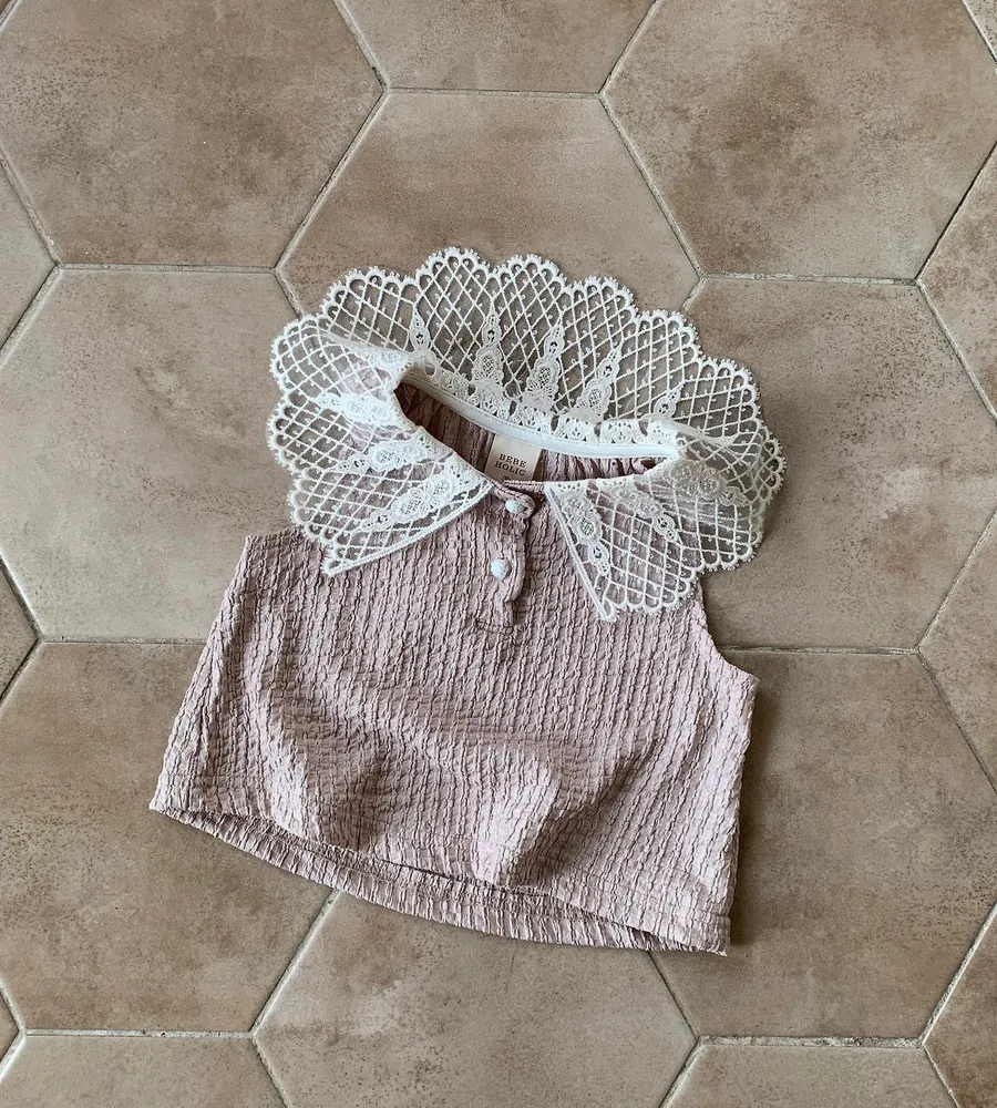 26'夏〡Bebeholic〡紋理蕾絲荷葉領無袖上衣