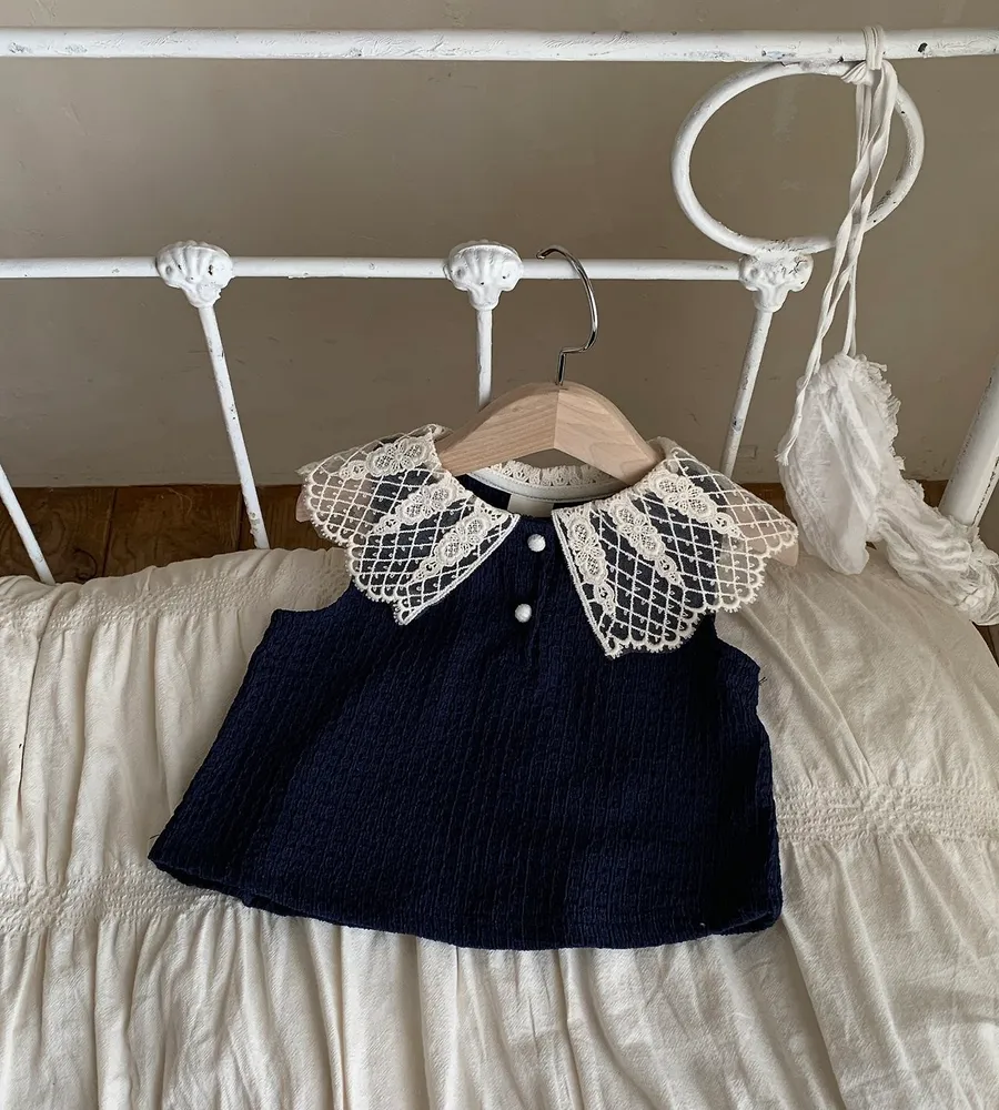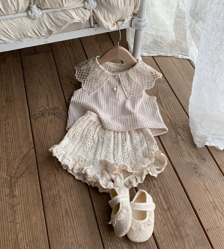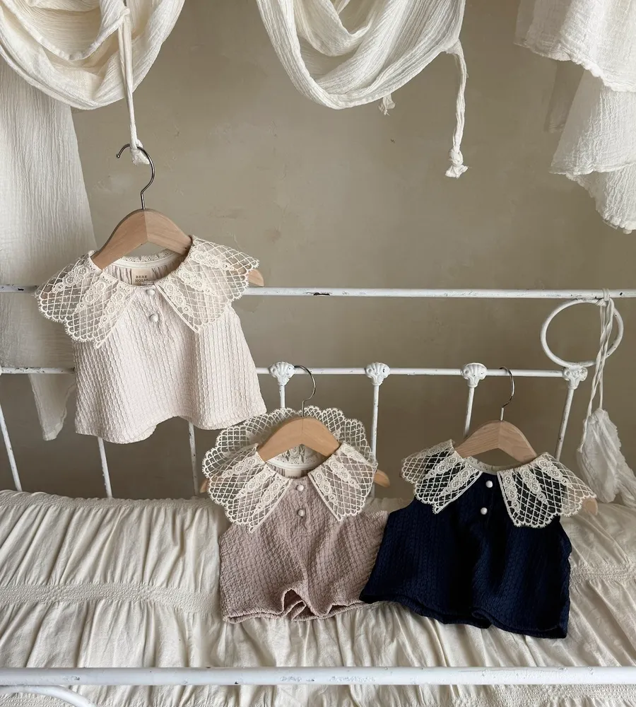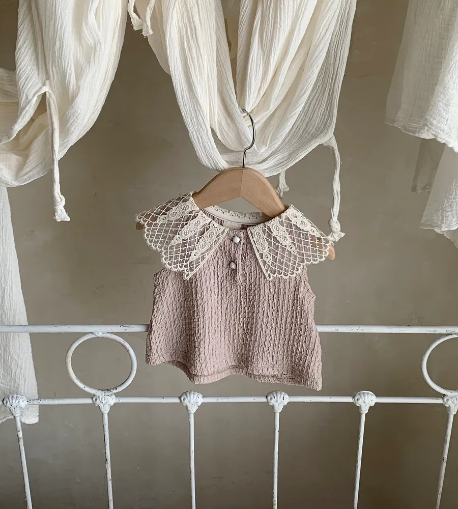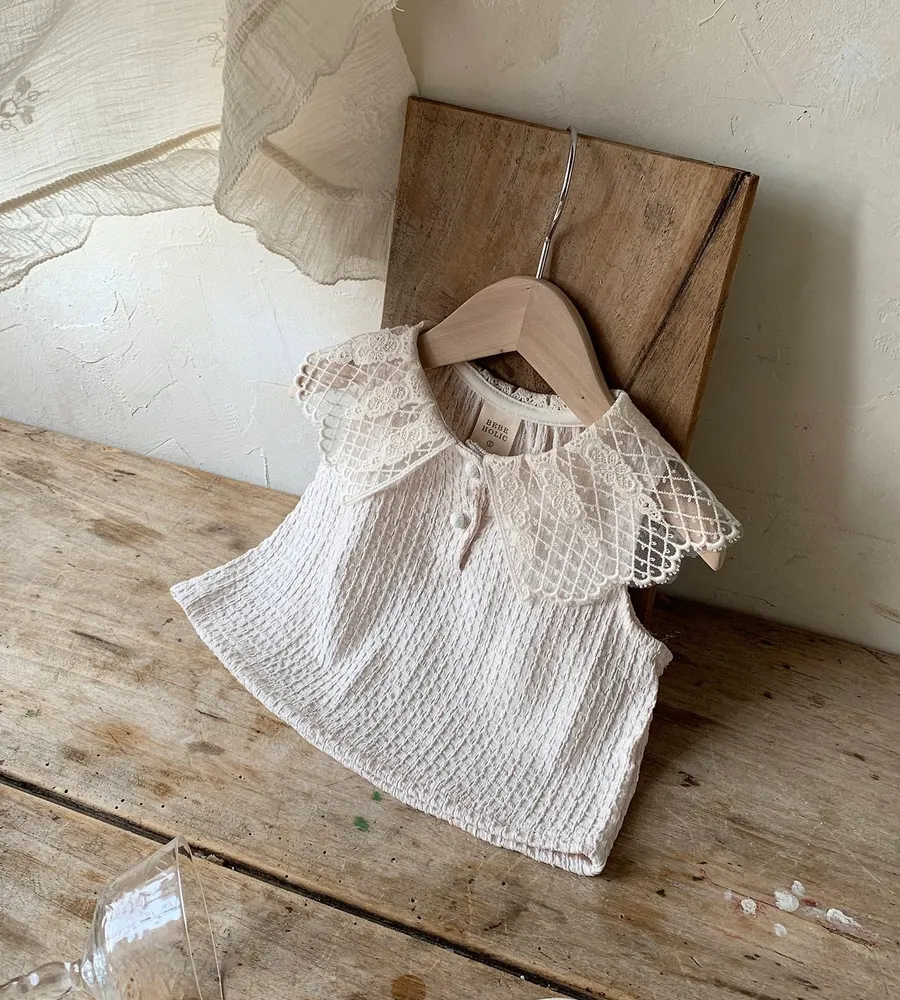 26'夏〡Bebeholic〡紋理蕾絲荷葉領無袖上衣