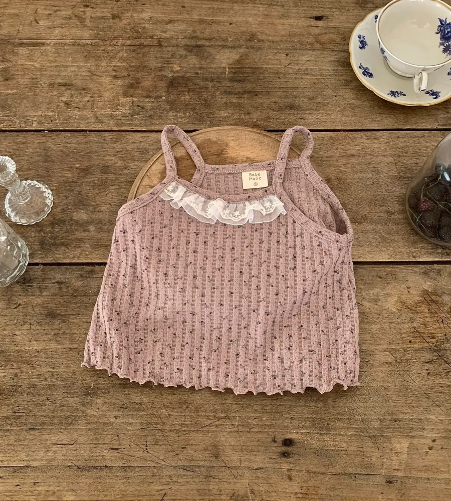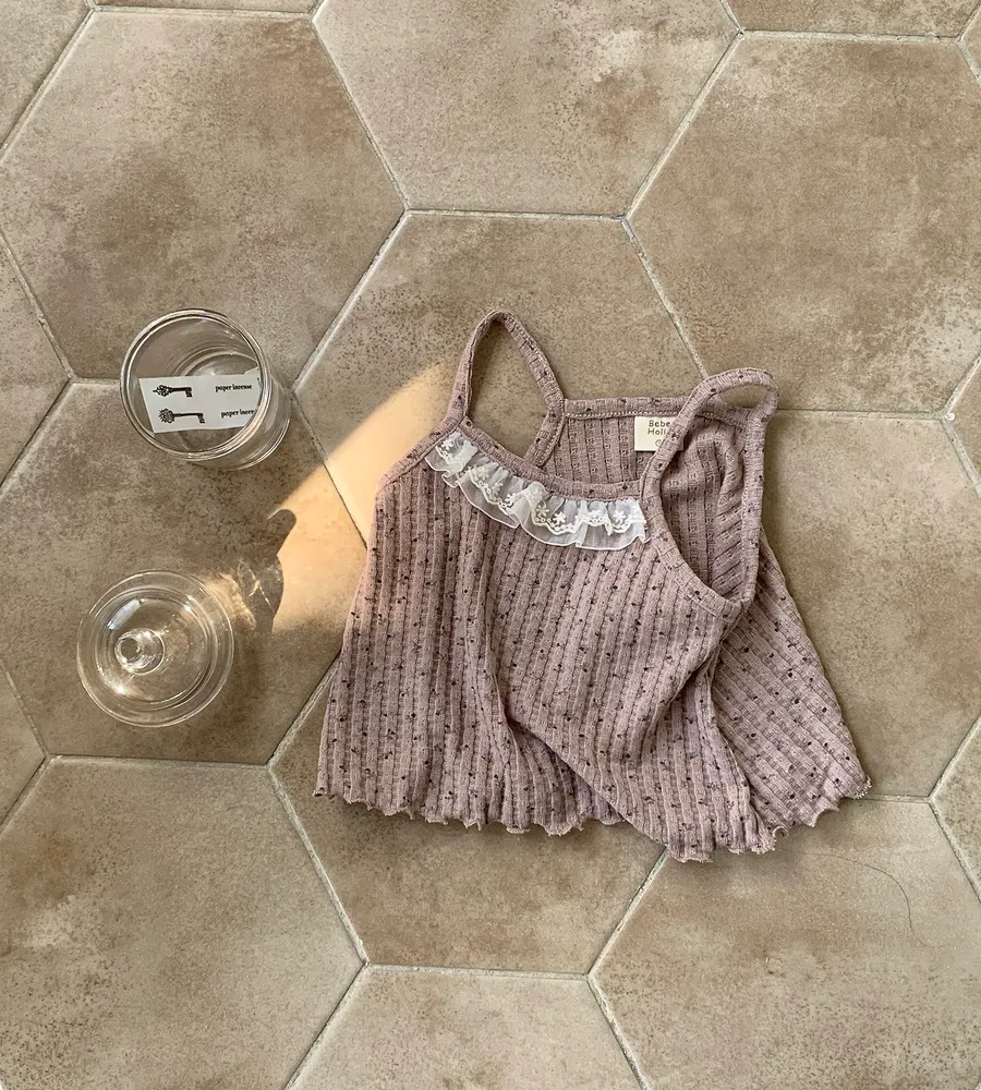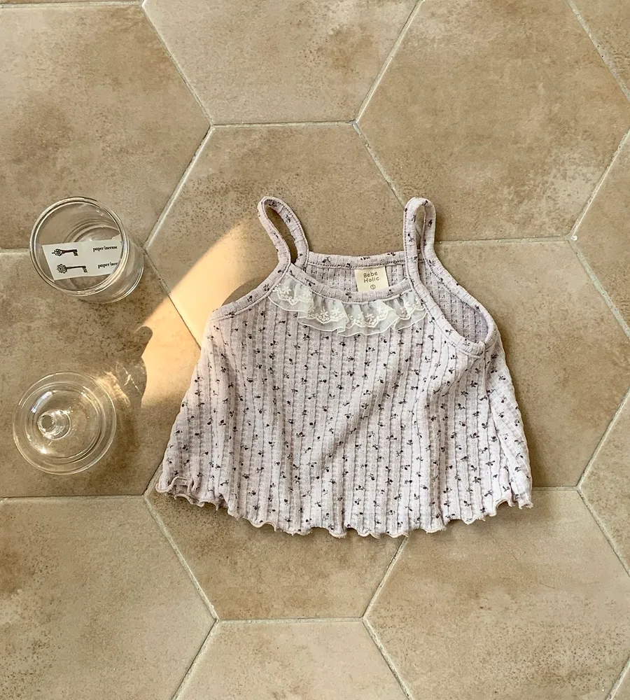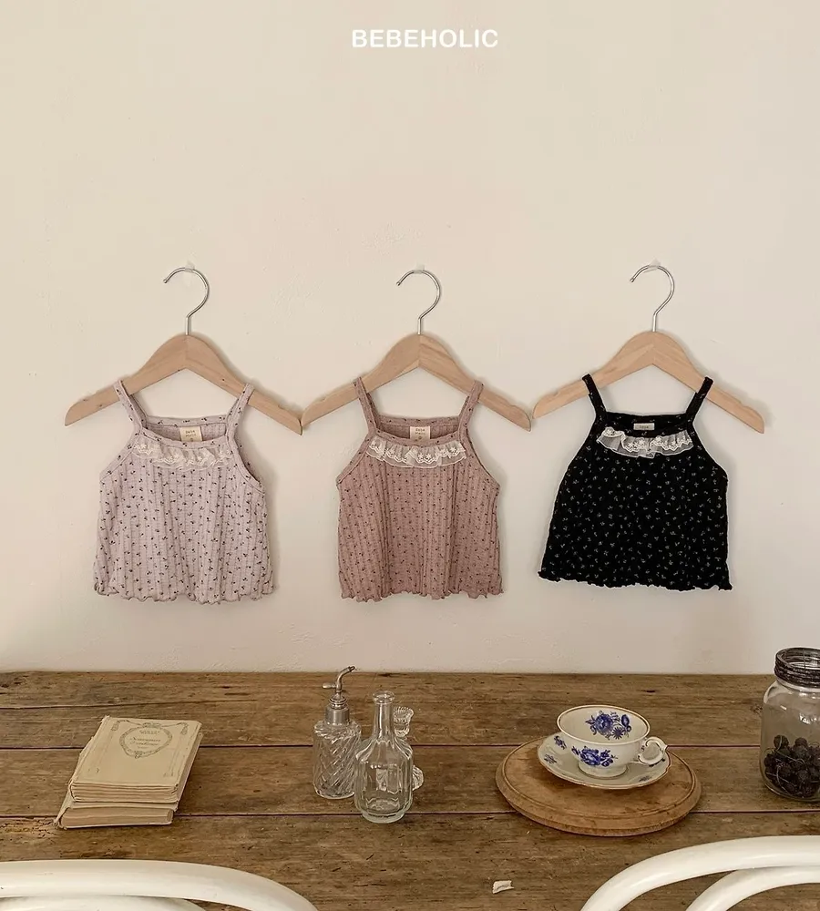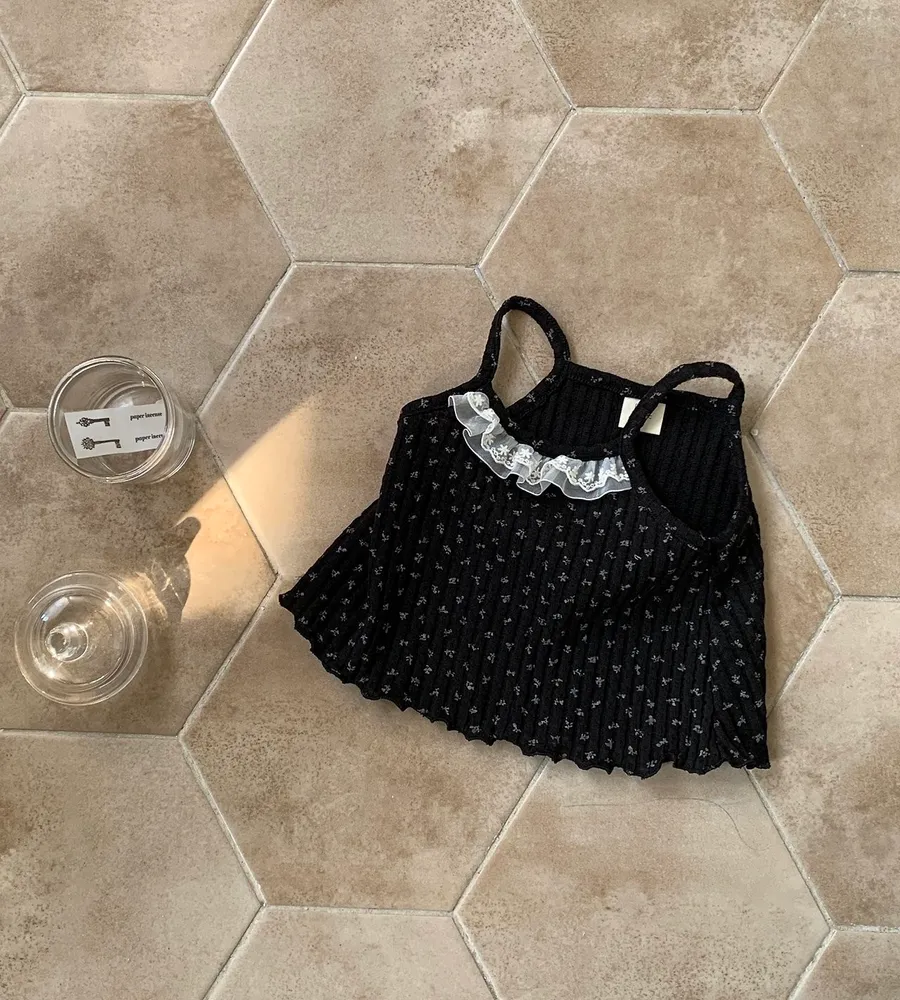 26'夏〡Bebeholic〡編織紋蕾絲領拼接無袖細肩上衣