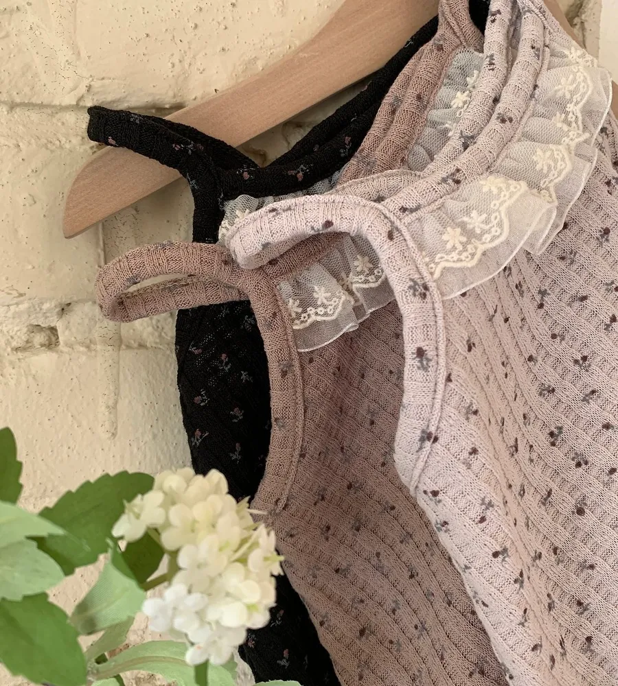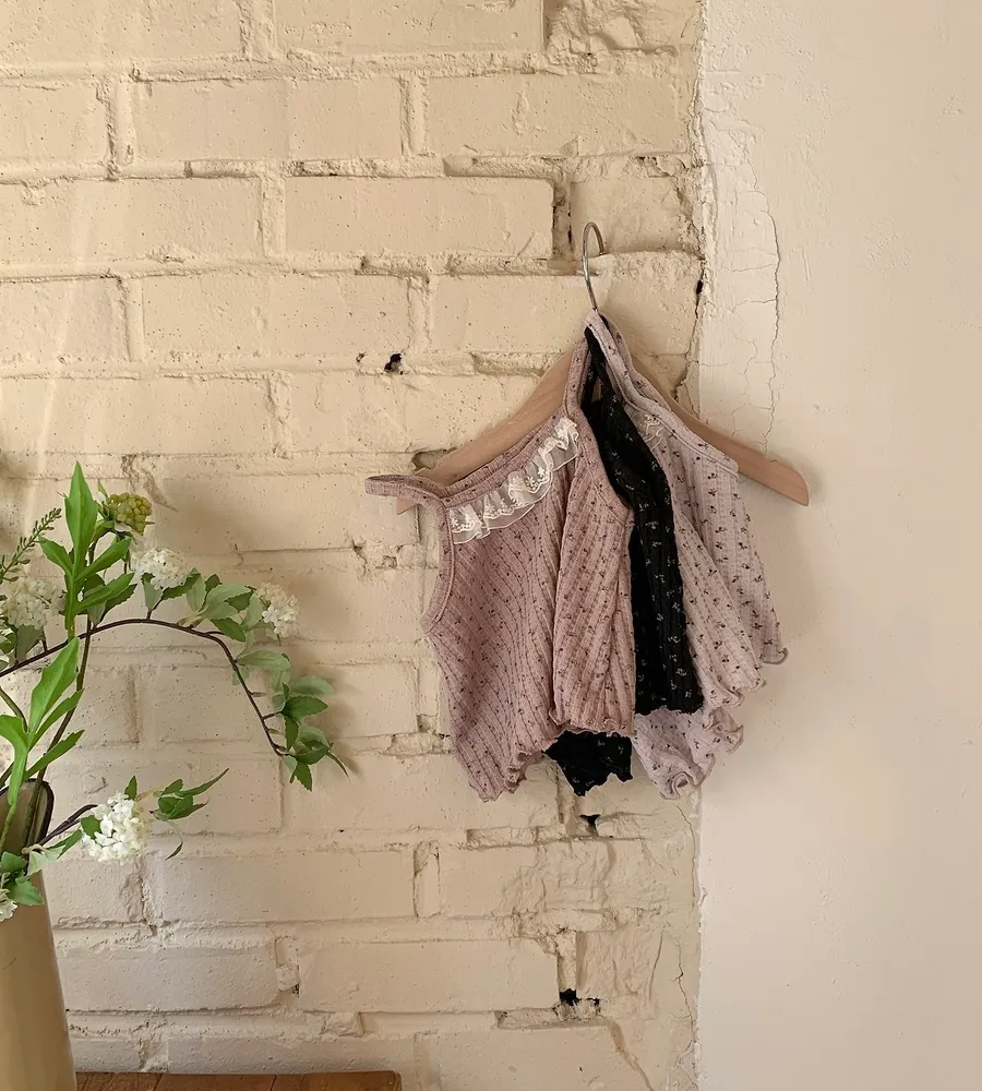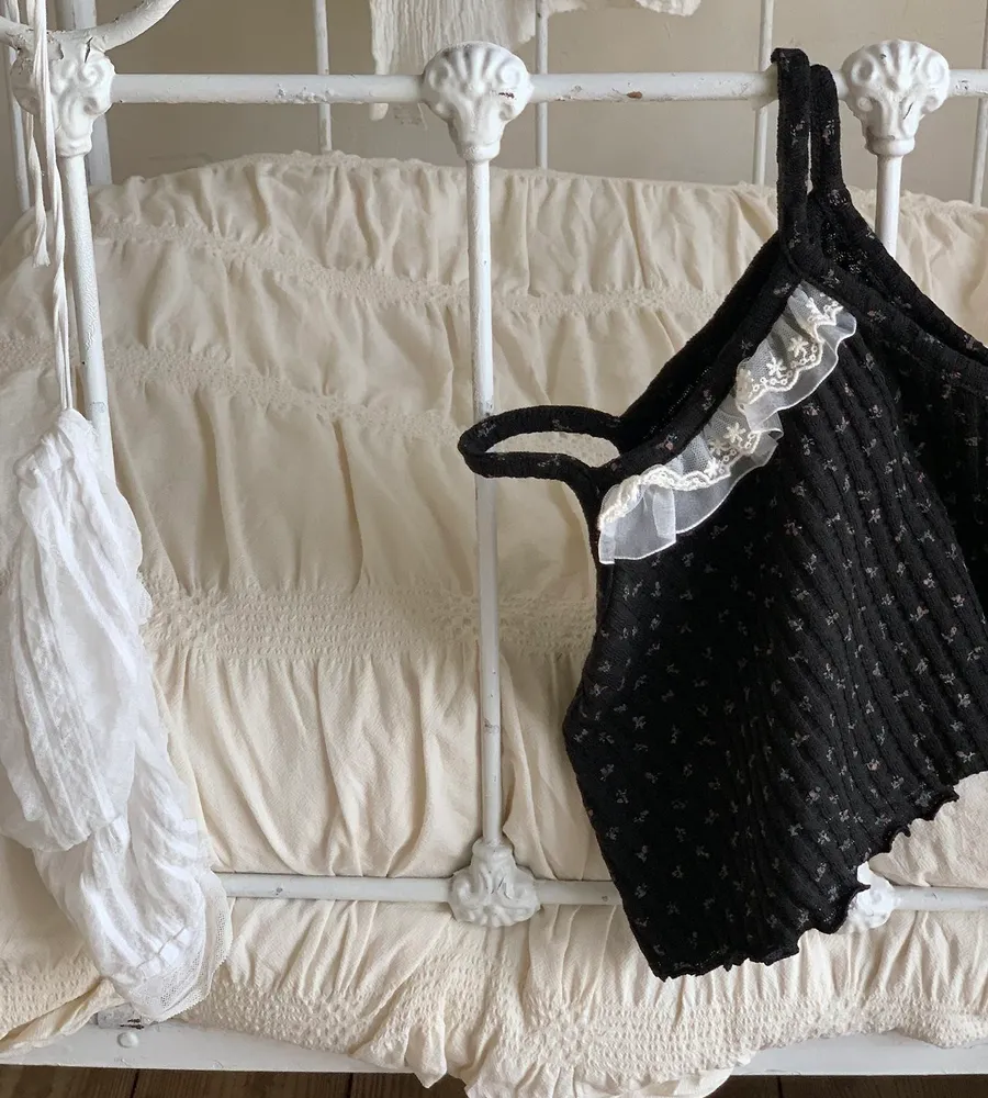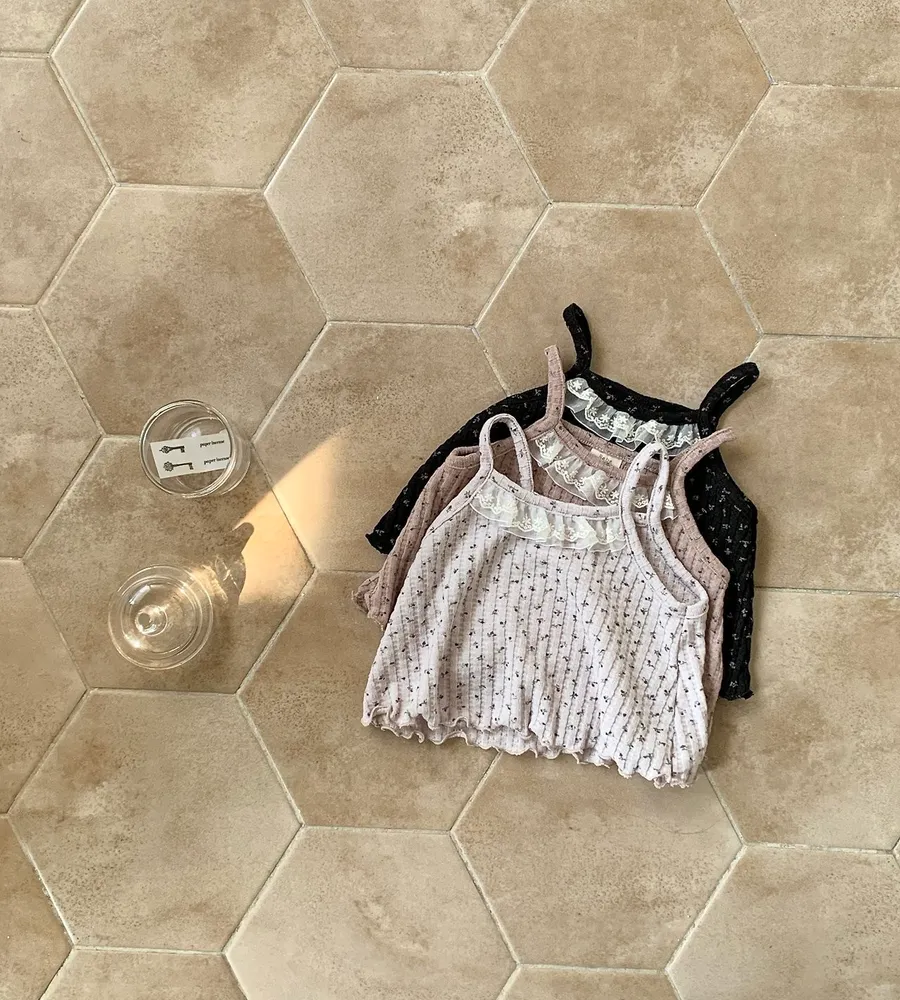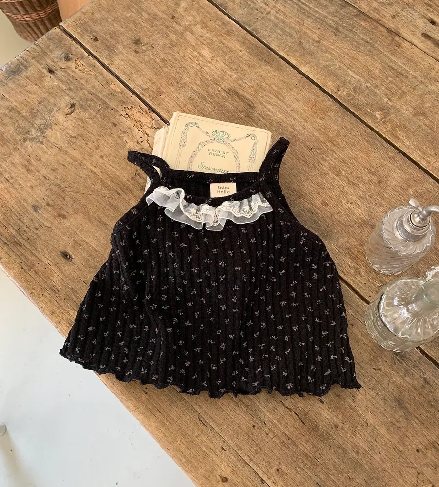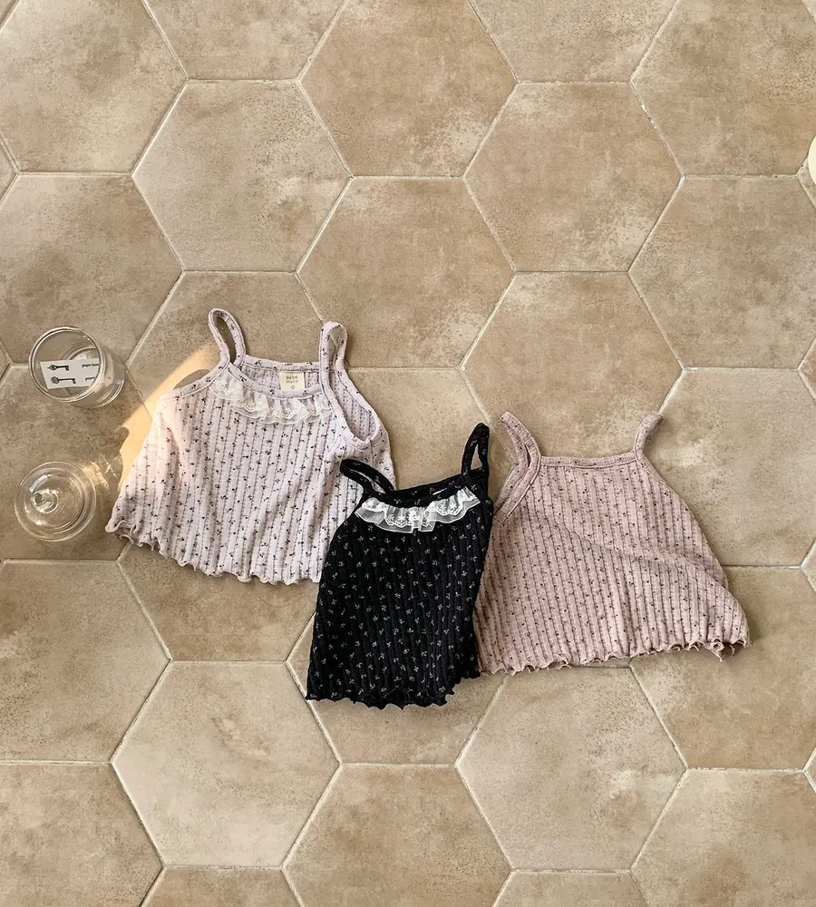 26'夏〡Bebeholic〡編織紋蕾絲領拼接無袖細肩上衣