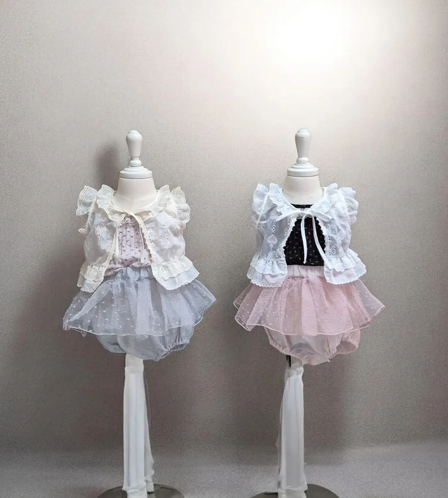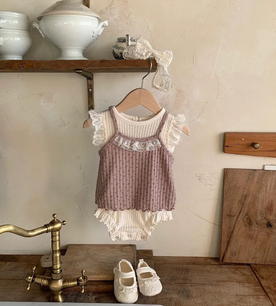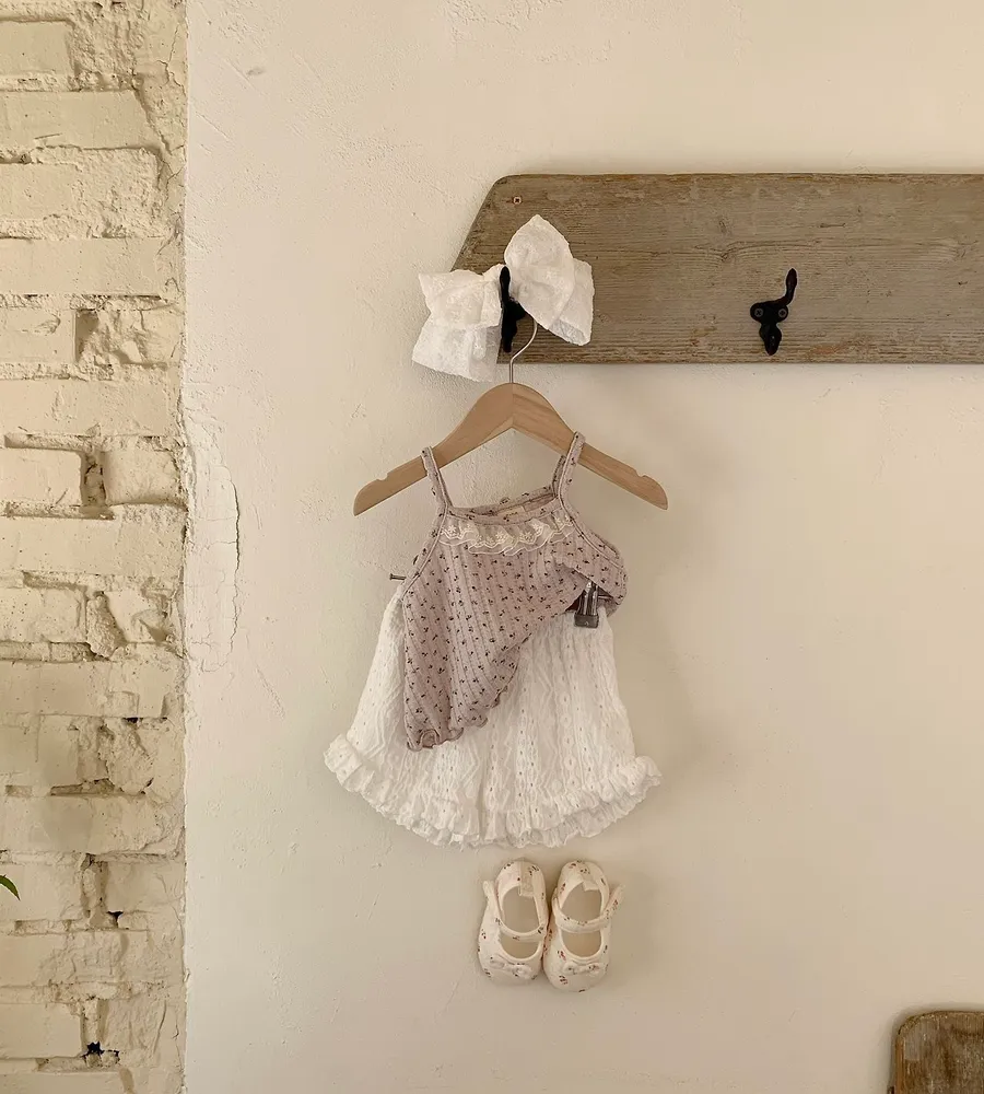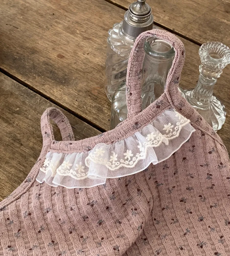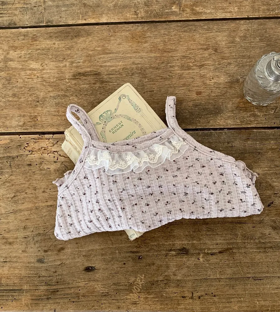26'夏〡Bebeholic〡編織紋蕾絲領拼接無袖細肩上衣