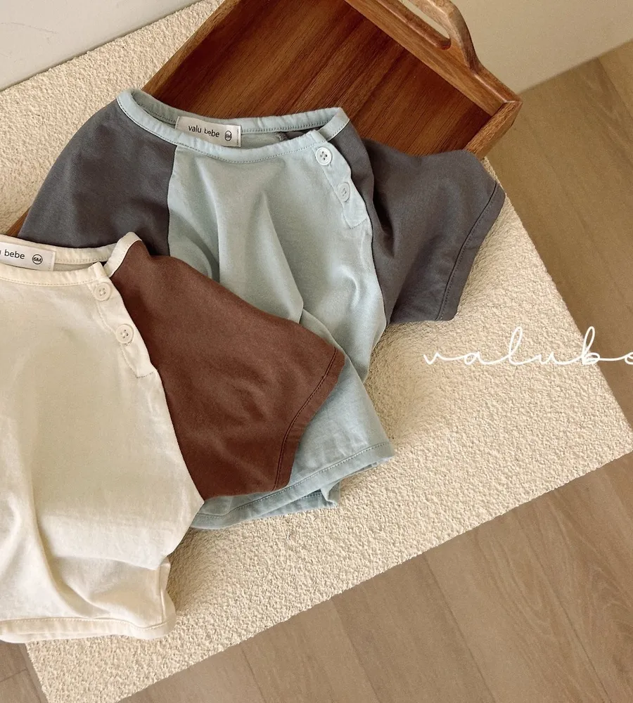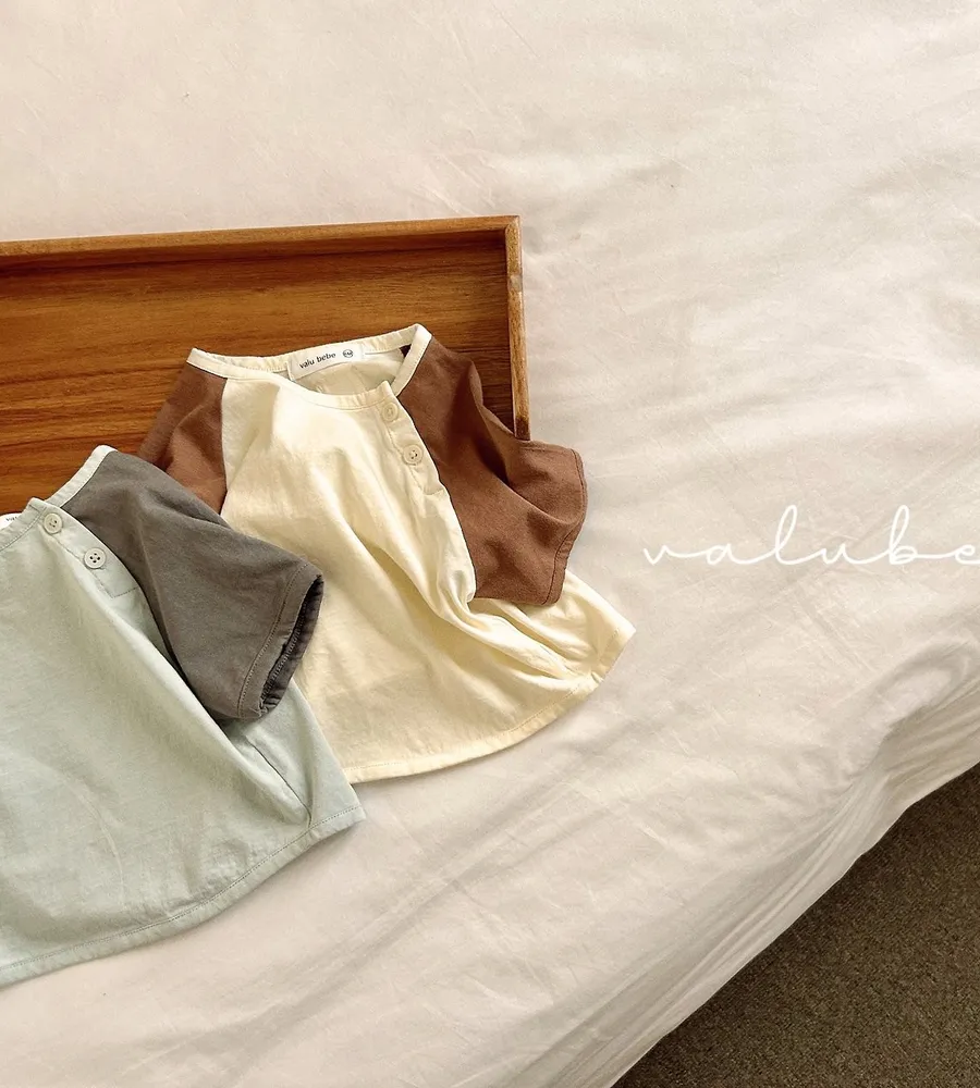 26'夏〡valubebe〡拚色開扣圓領上衣