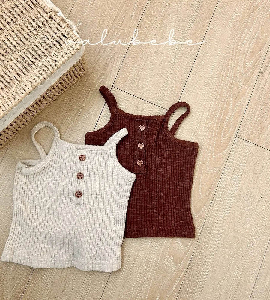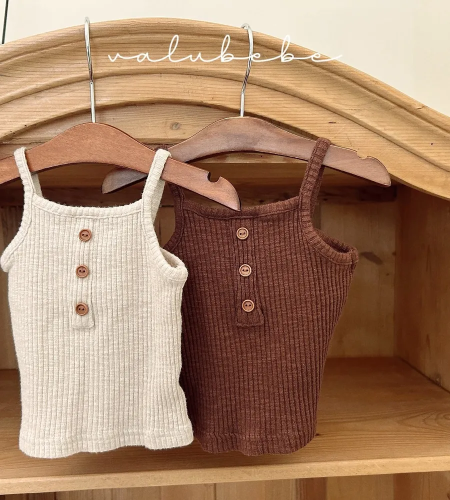 26'夏〡valubebe〡鈕扣坑條無袖細肩上衣
