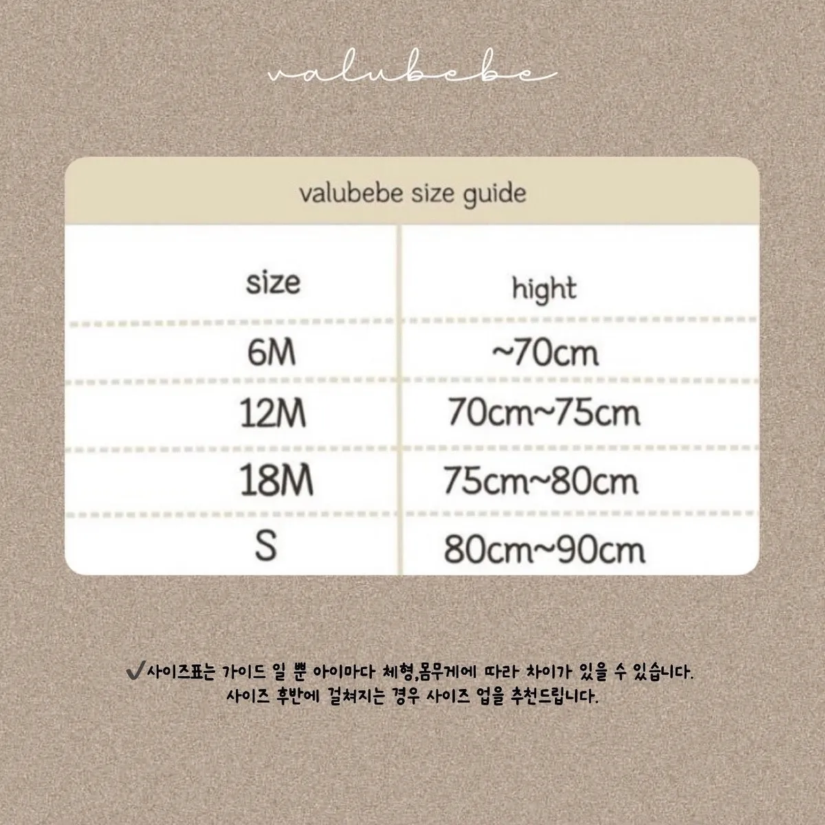 *尺寸表僅為品牌提供參考,實際穿著效果因孩子身型不同而異*