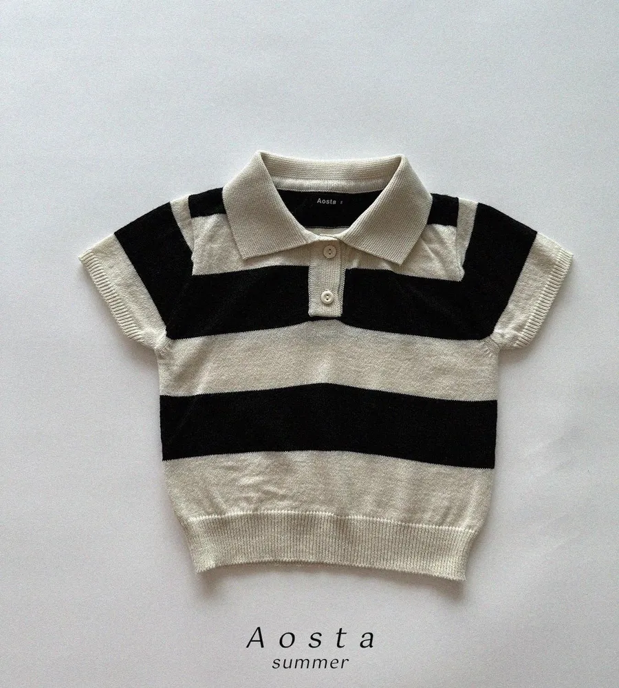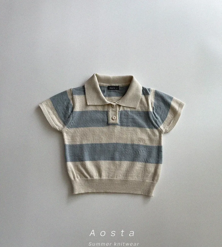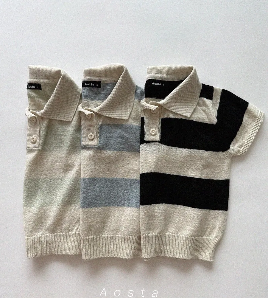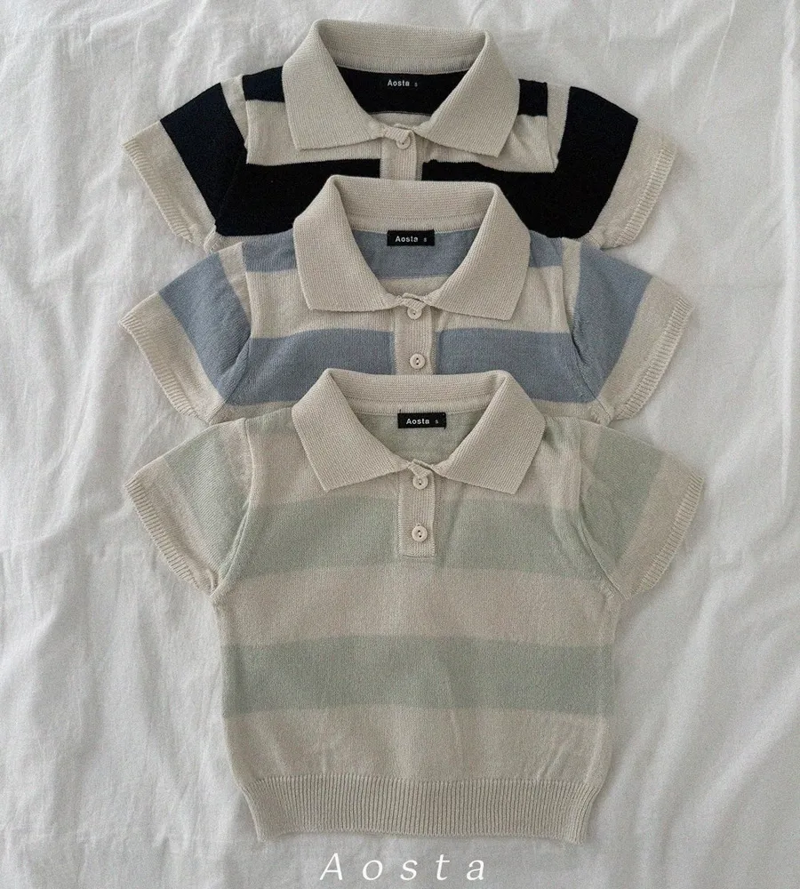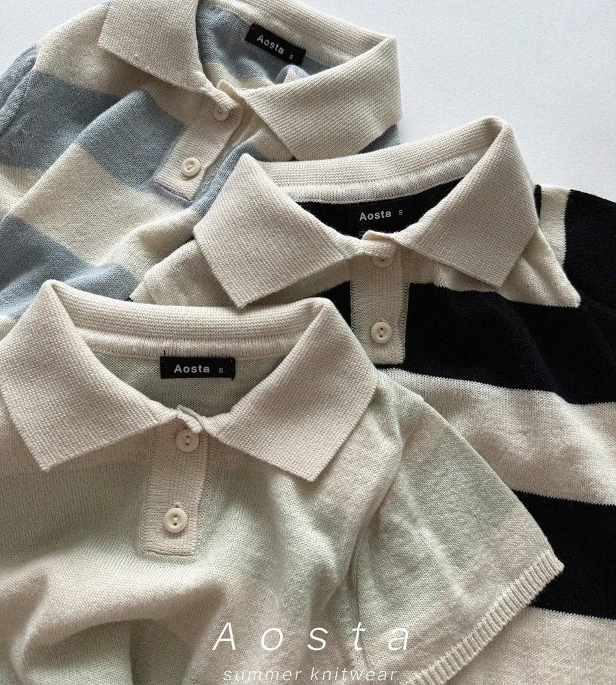 26'夏〡Aosta〡寬條紋針織翻領上衣