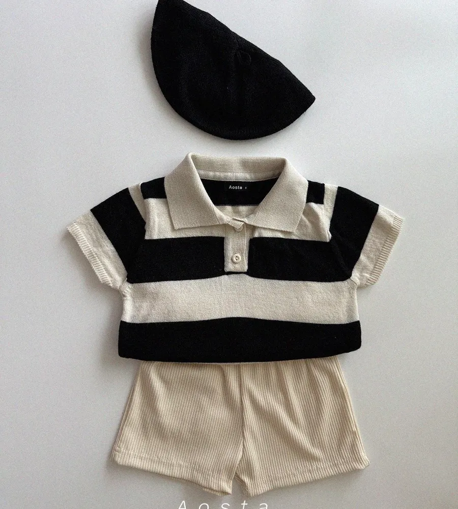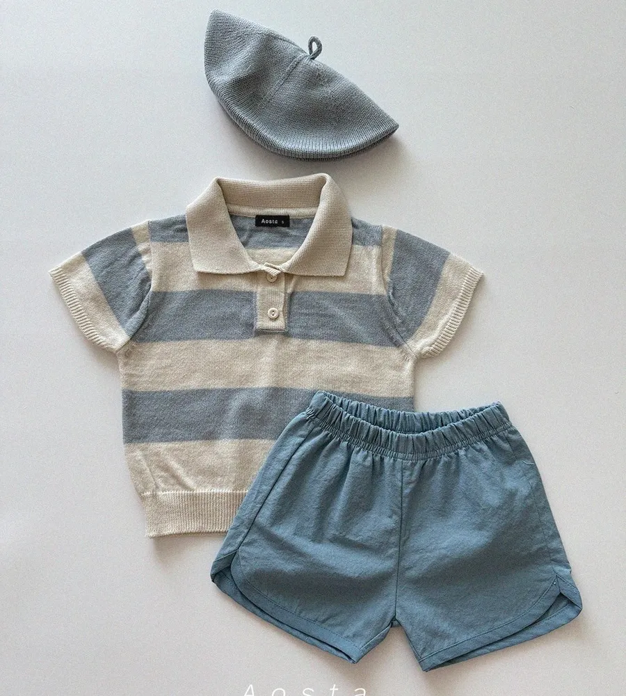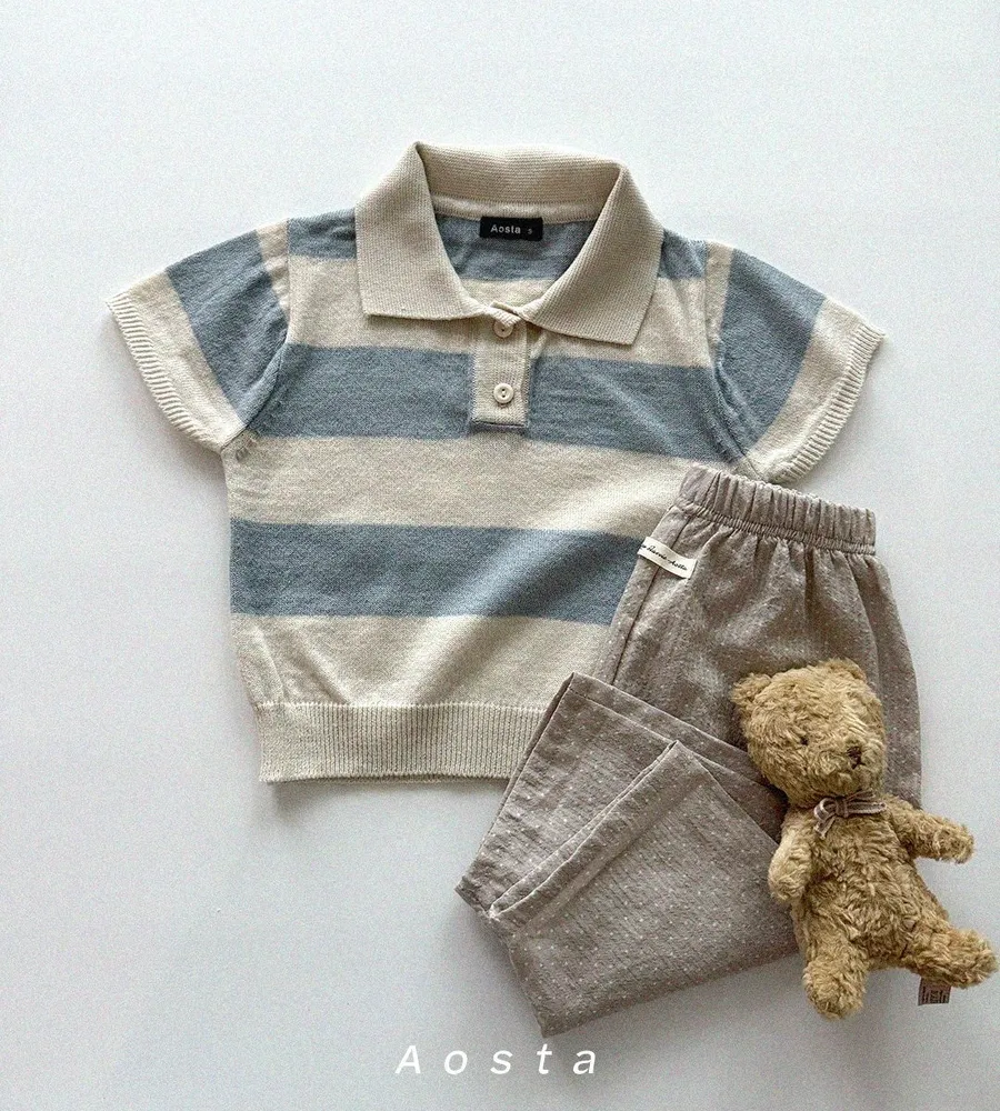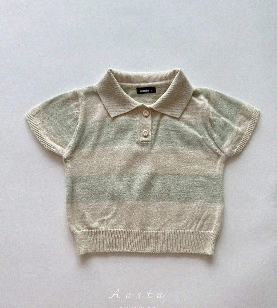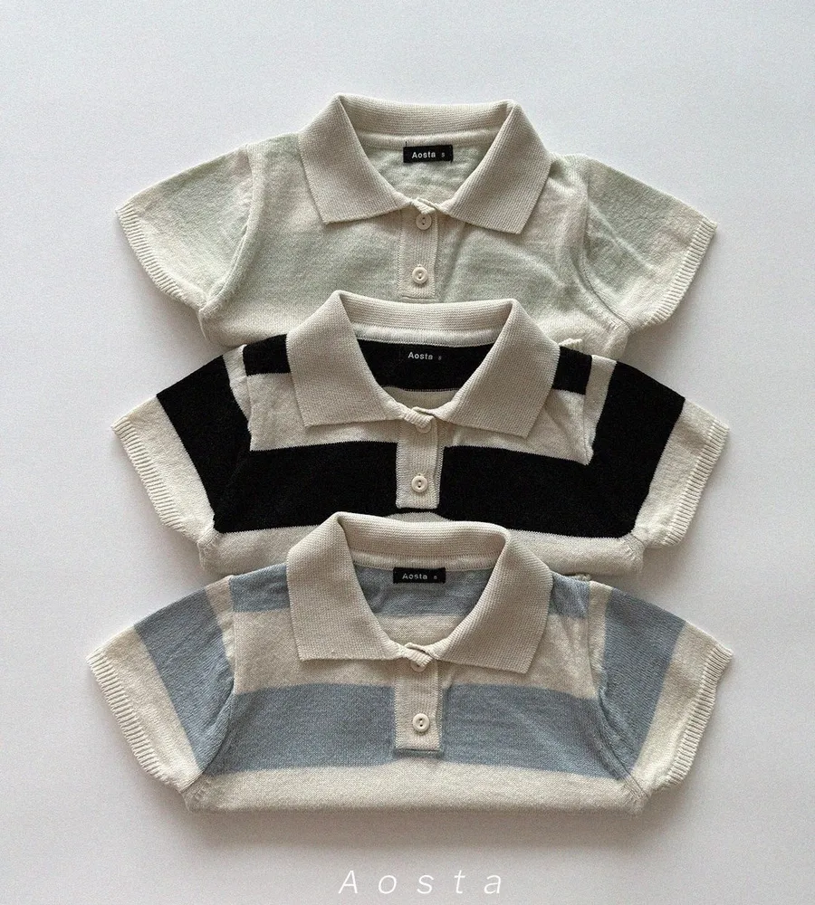 26'夏〡Aosta〡寬條紋針織翻領上衣