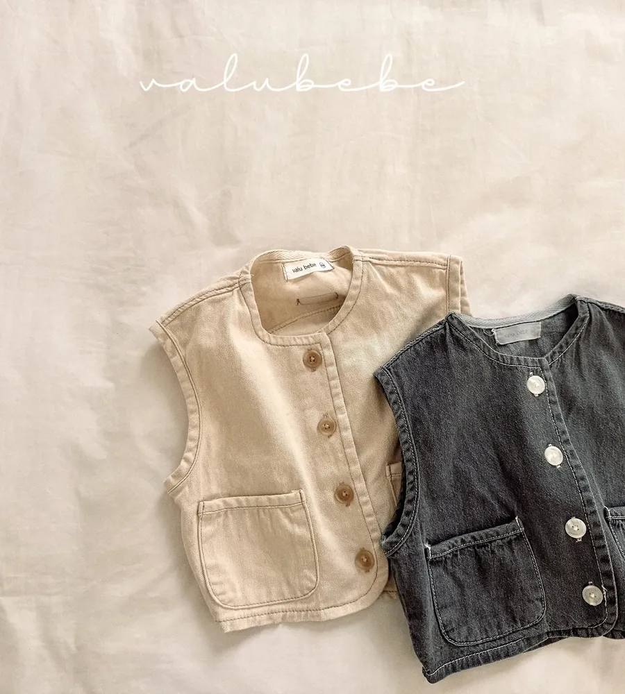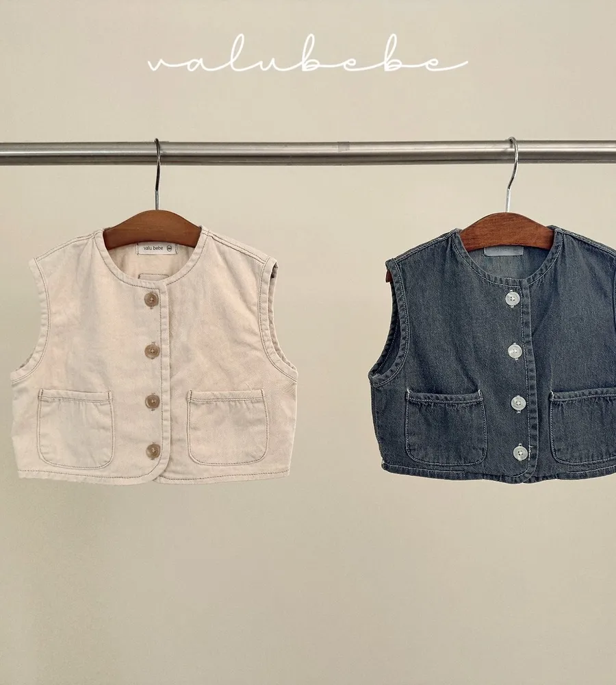 26'夏〡valubebe〡牛仔小口袋排釦背心