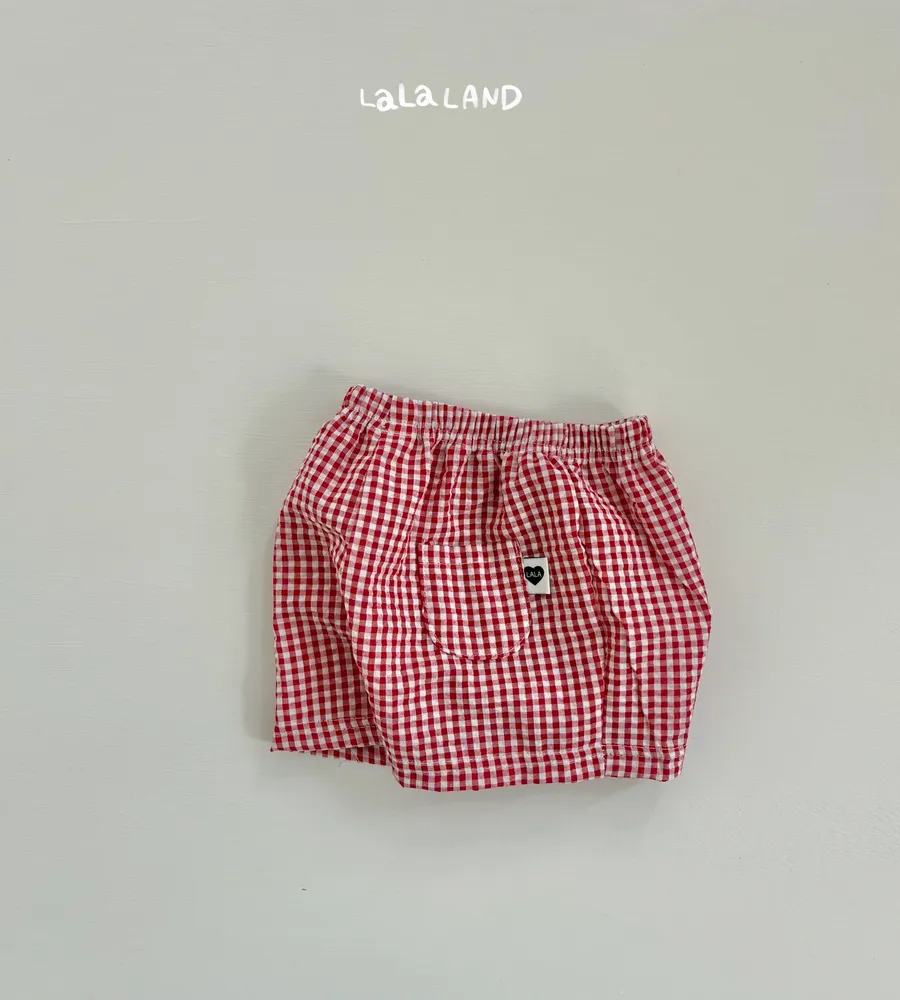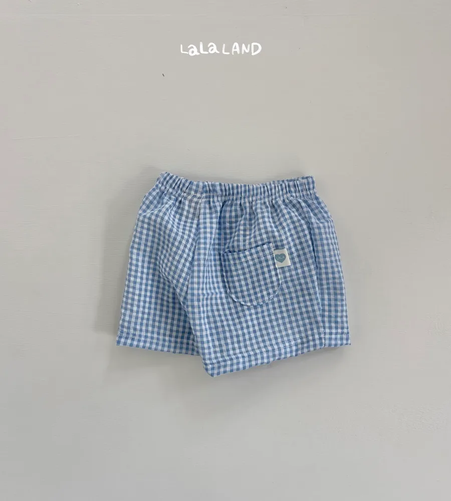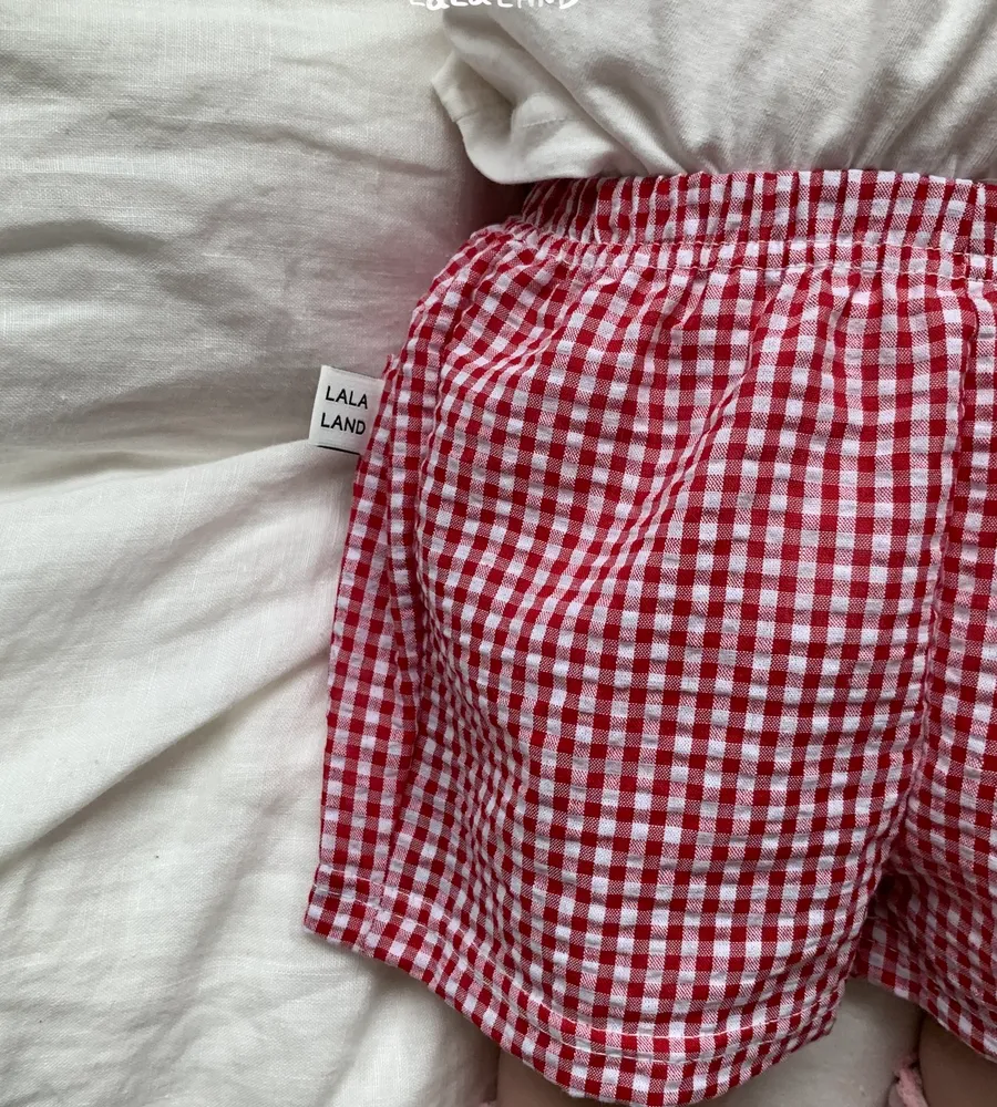 26'夏〡LalaLand〡泡泡紗格子三分短褲-bebe