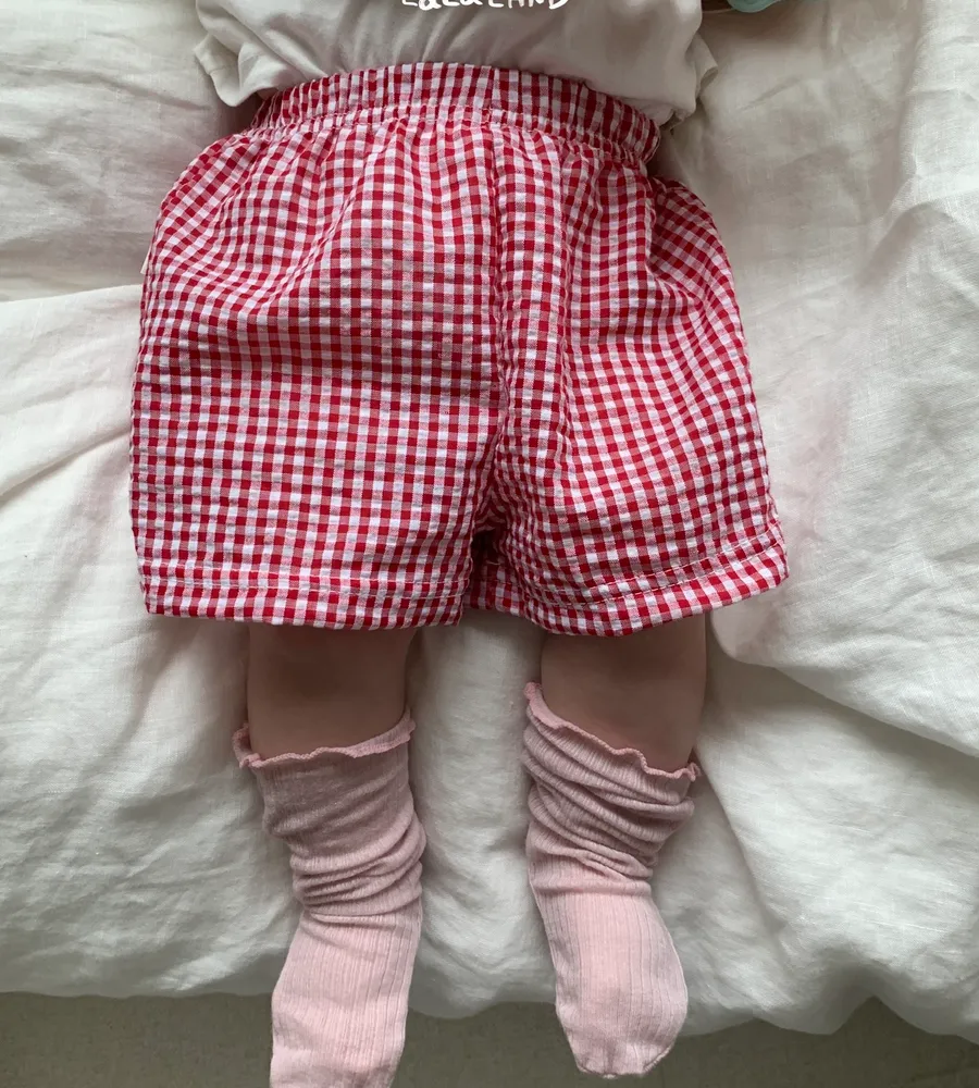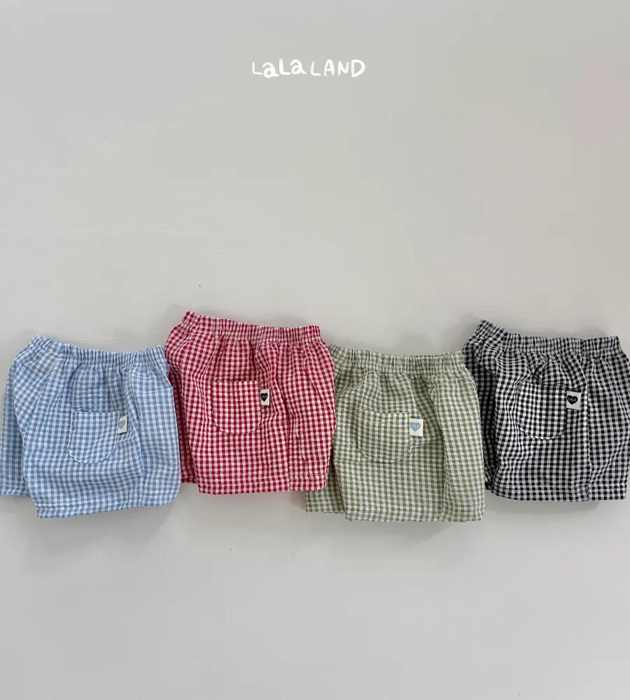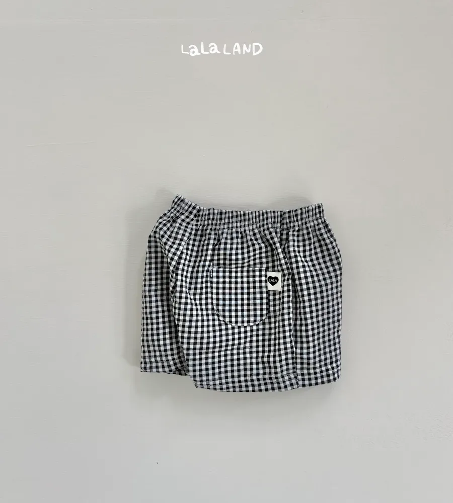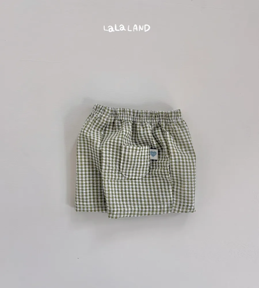 26'夏〡LalaLand〡泡泡紗格子三分短褲-bebe