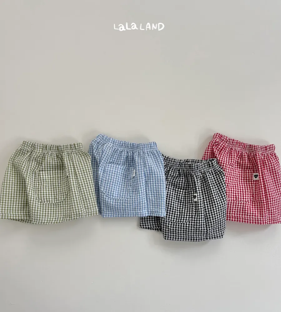 26'夏〡LalaLand〡泡泡紗格子三分短褲-kids