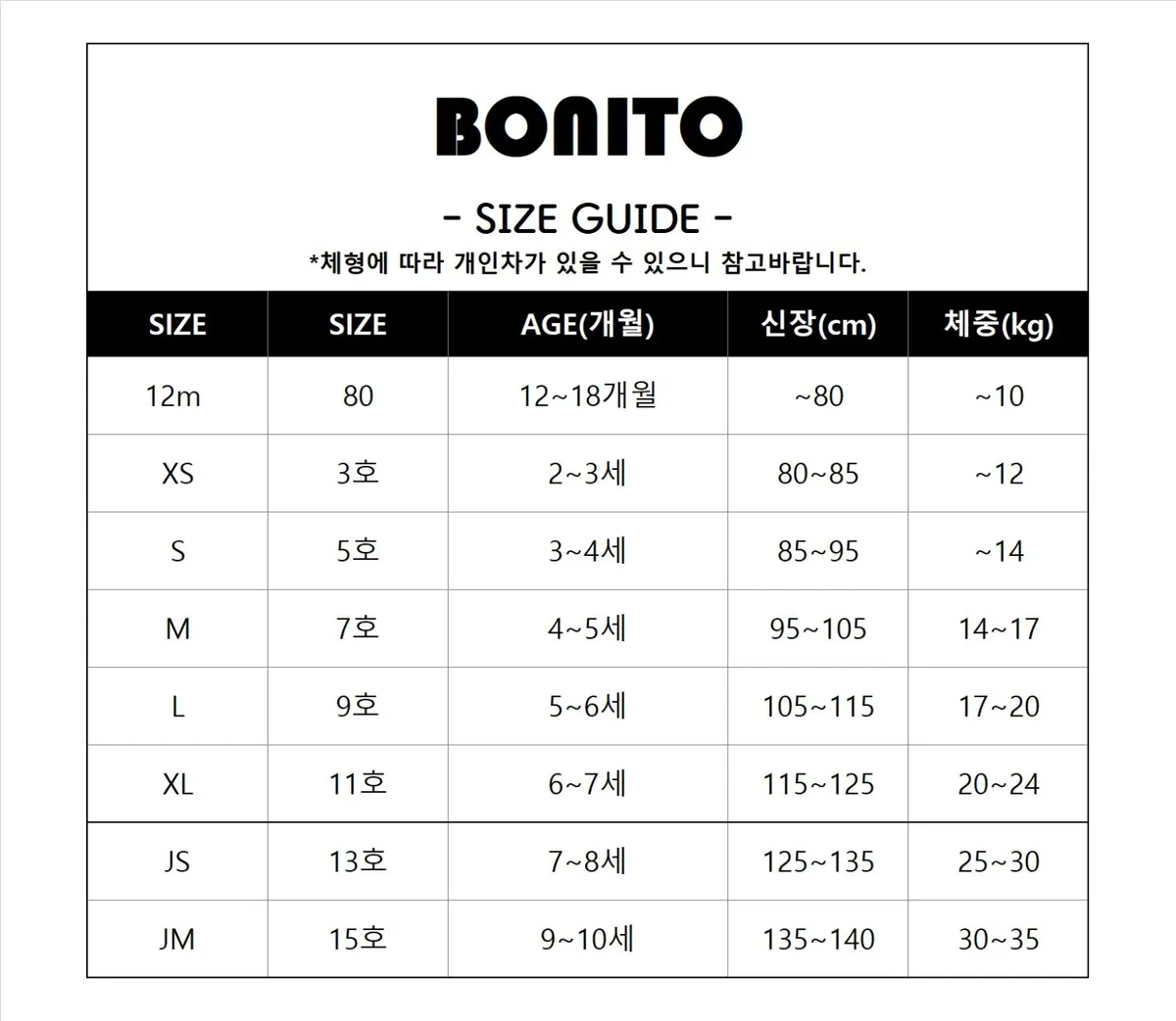 *尺寸表僅為品牌提供參考,實際穿著效果因孩子身型不同而異*