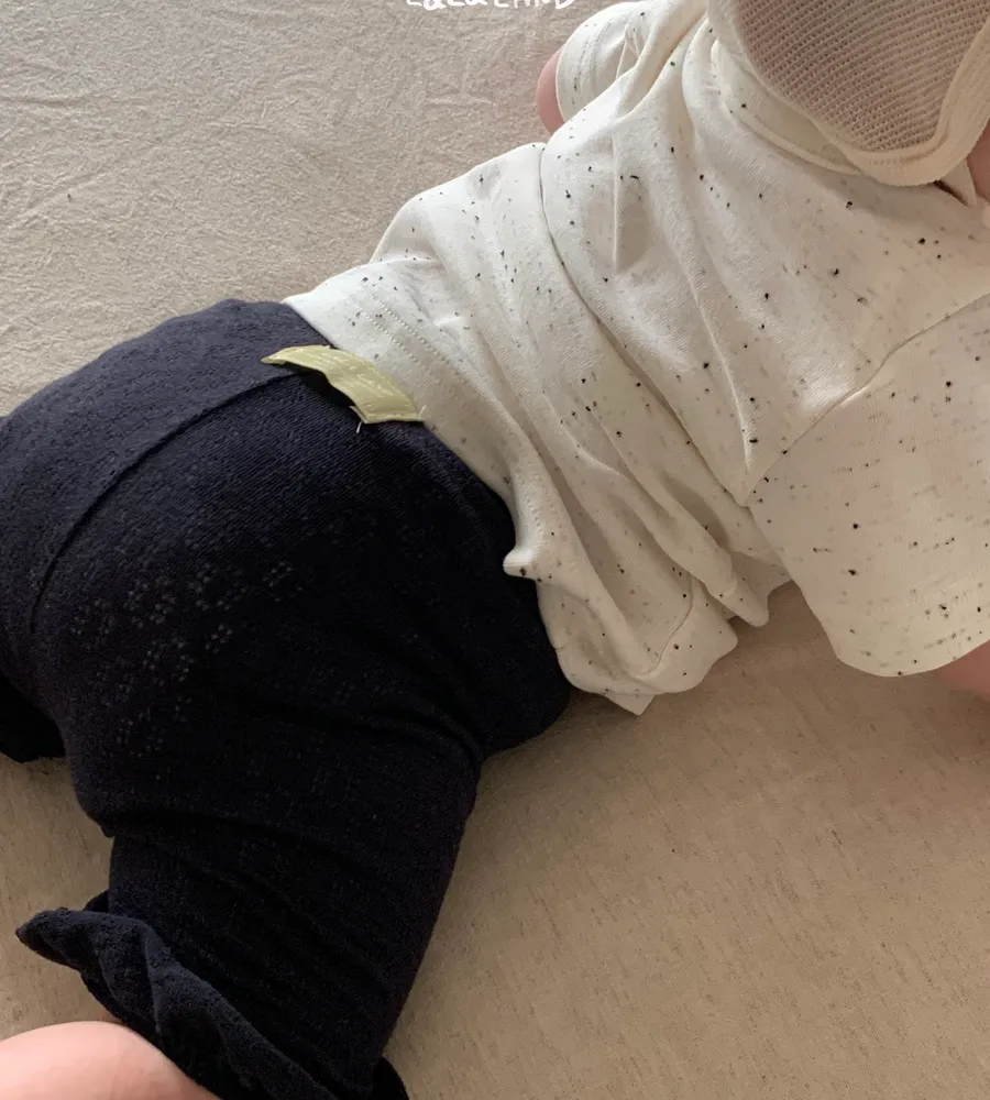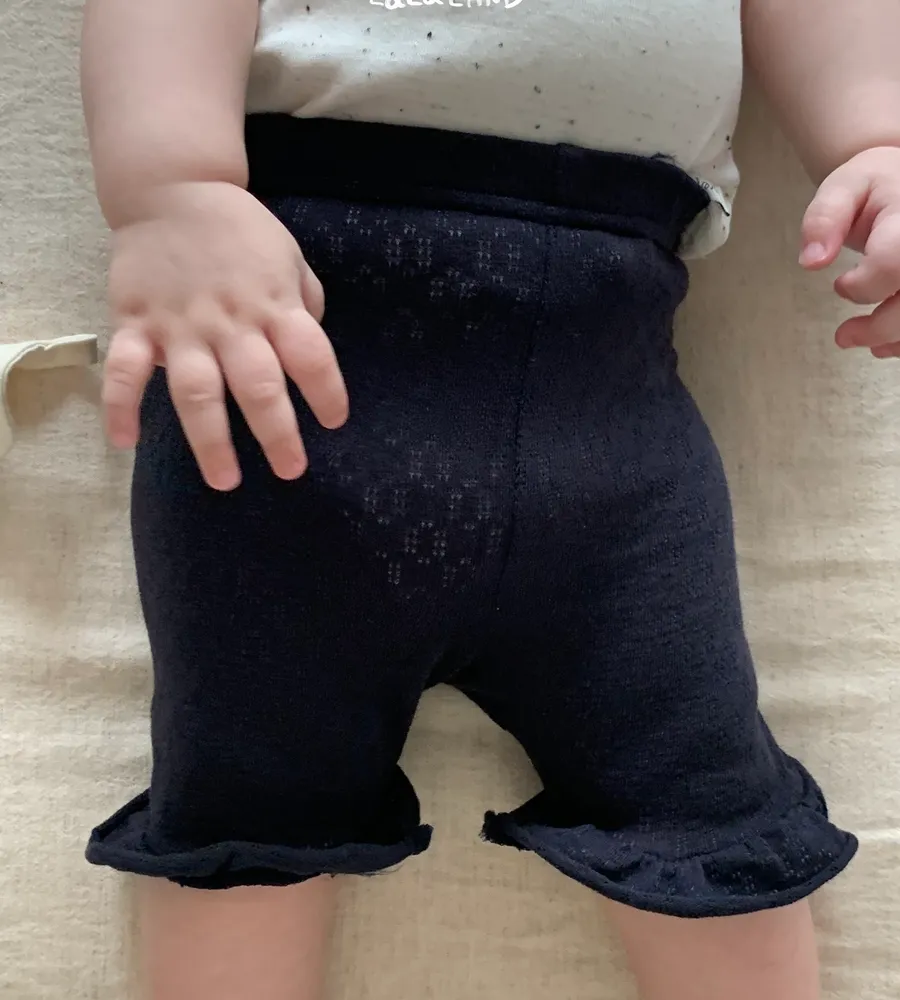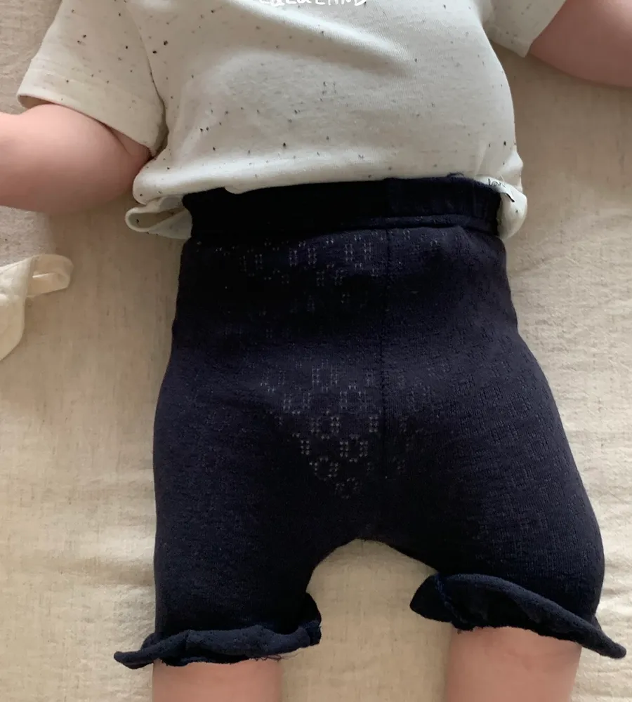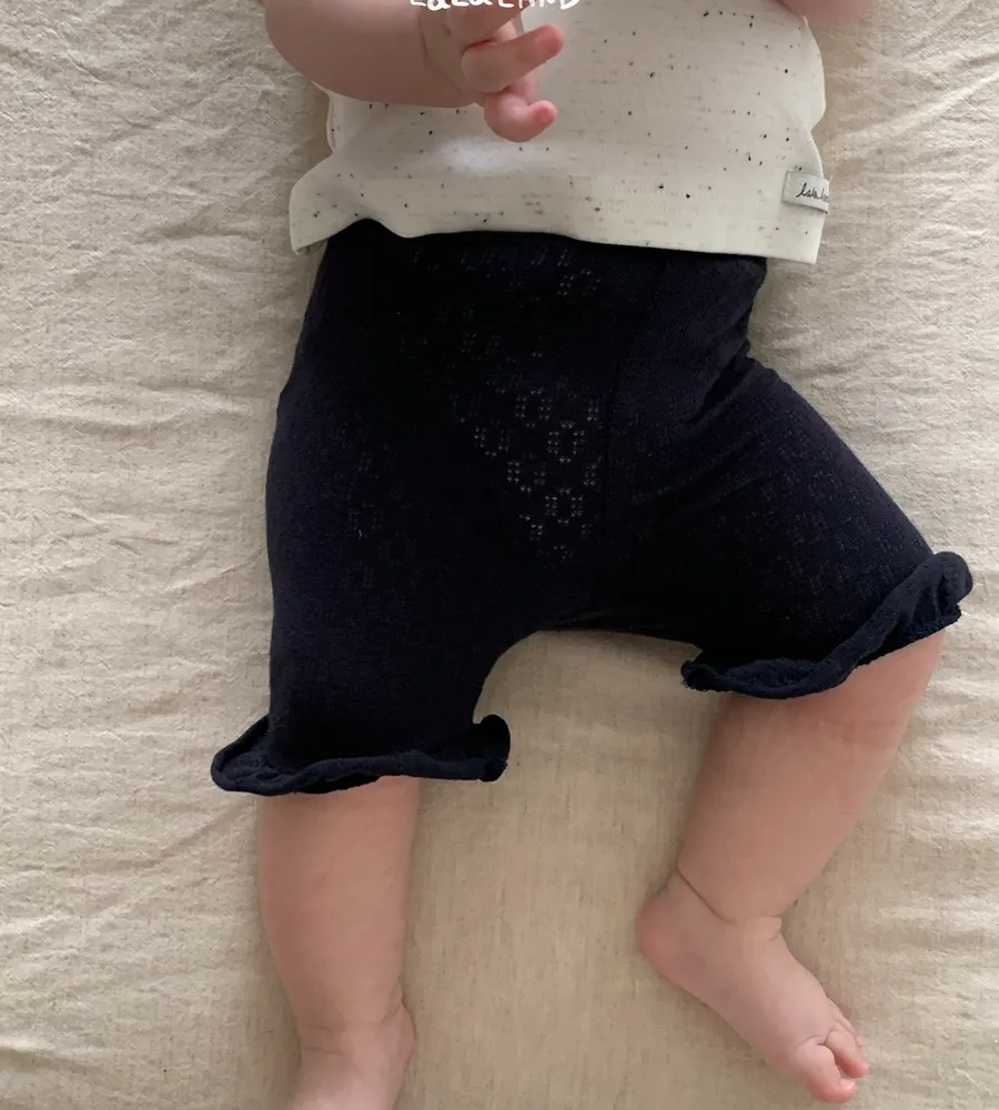 26'夏〡LalaLand〡孔眼荷葉邊四分打底褲-bebe