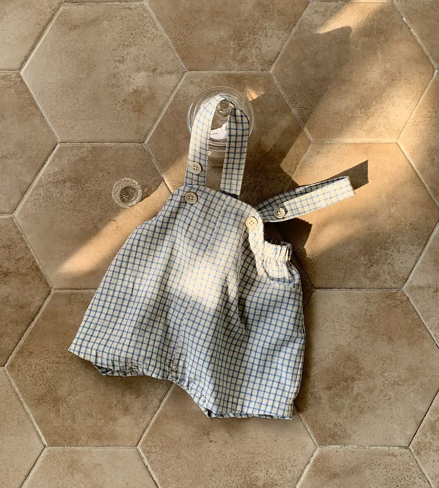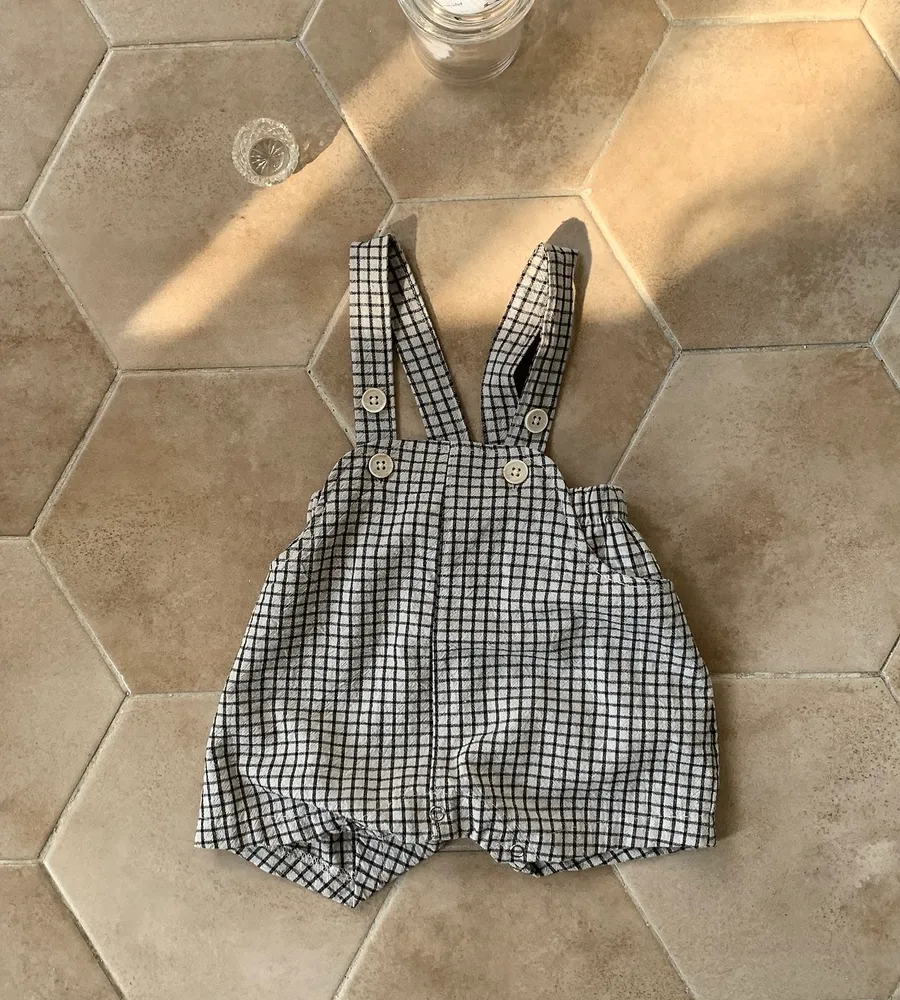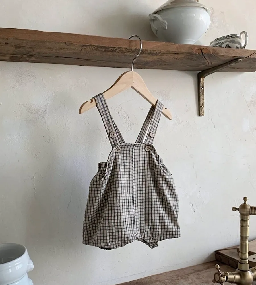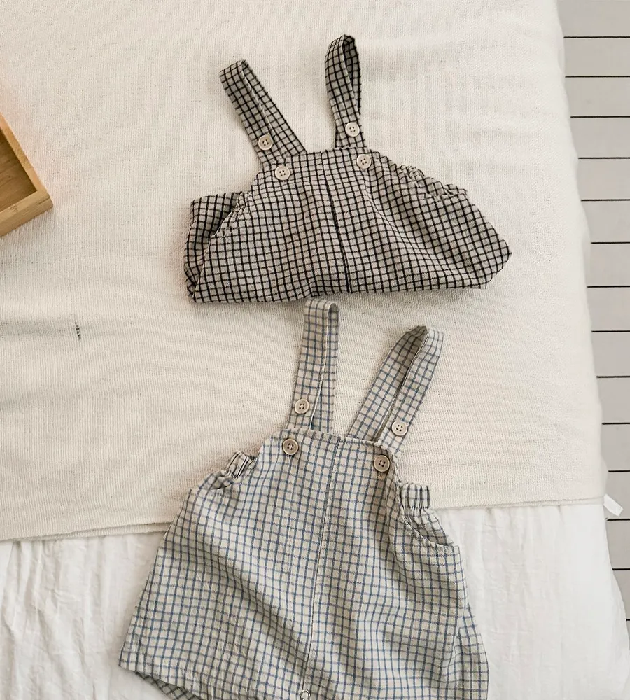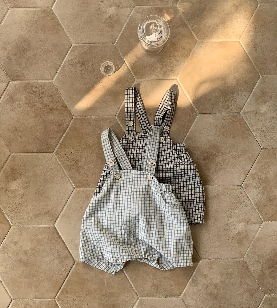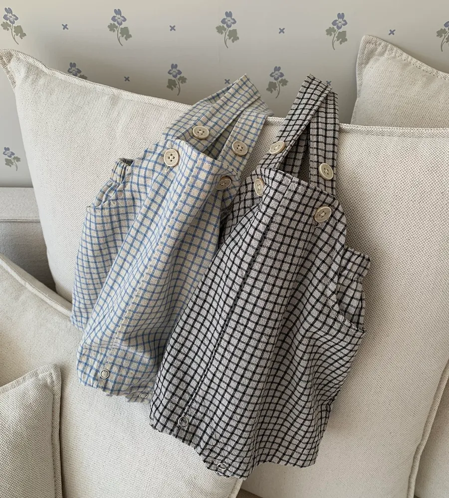 26'夏〡Bebeholic〡格子鈕扣吊帶包屁褲