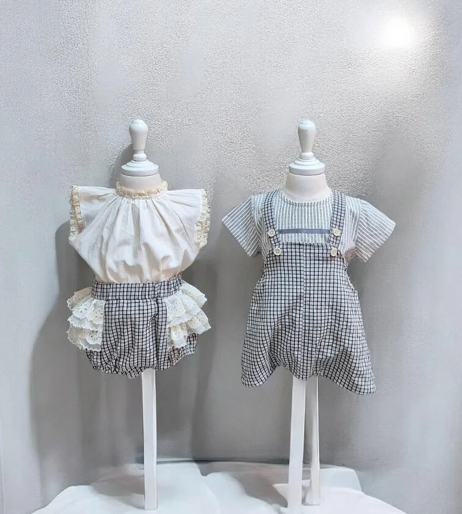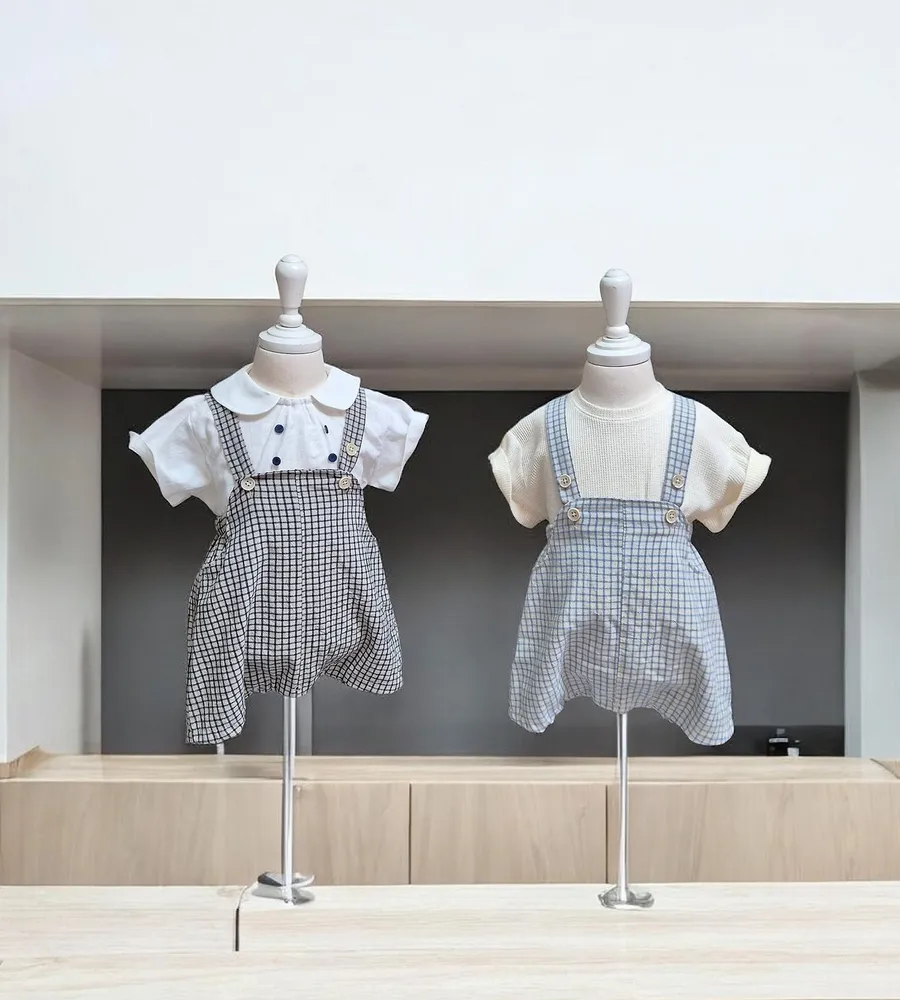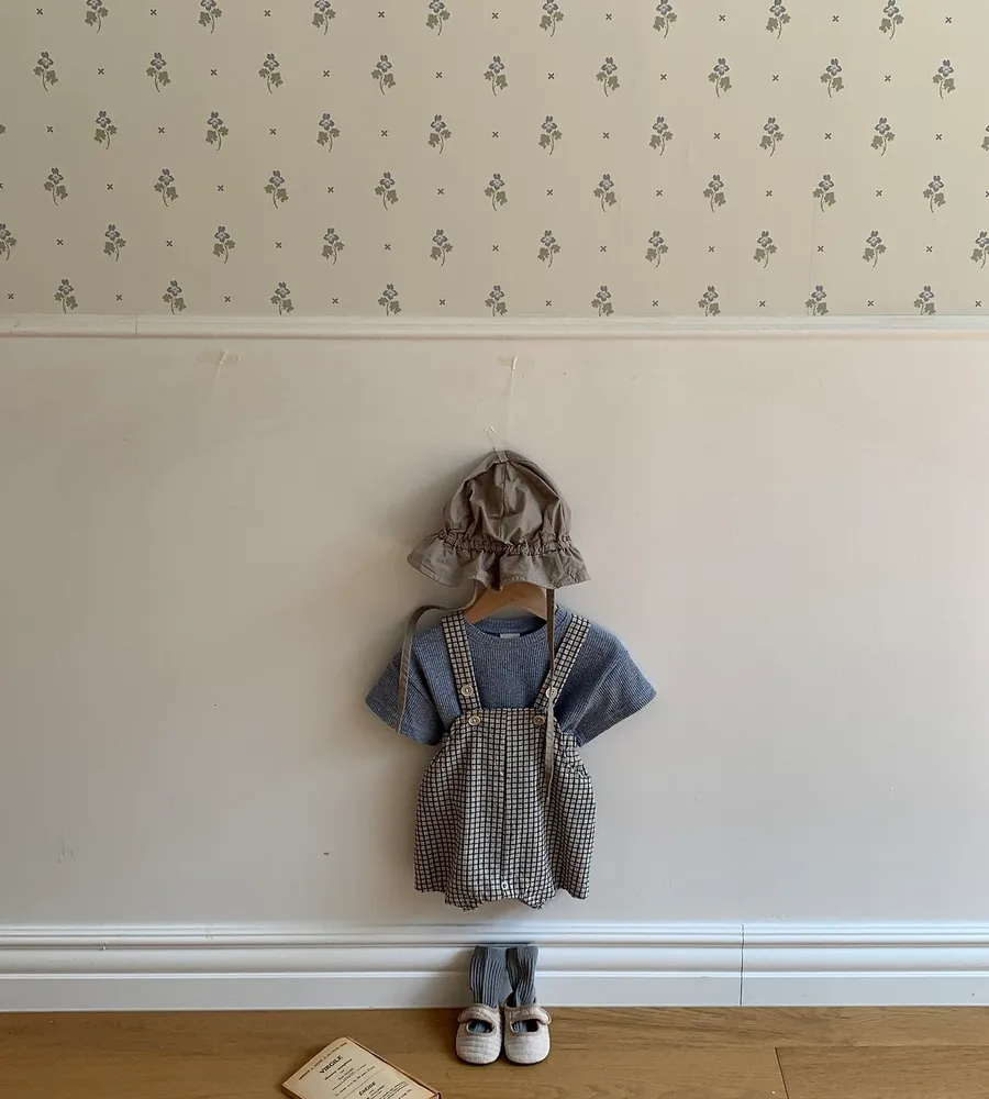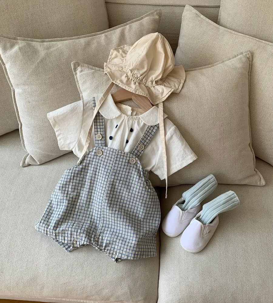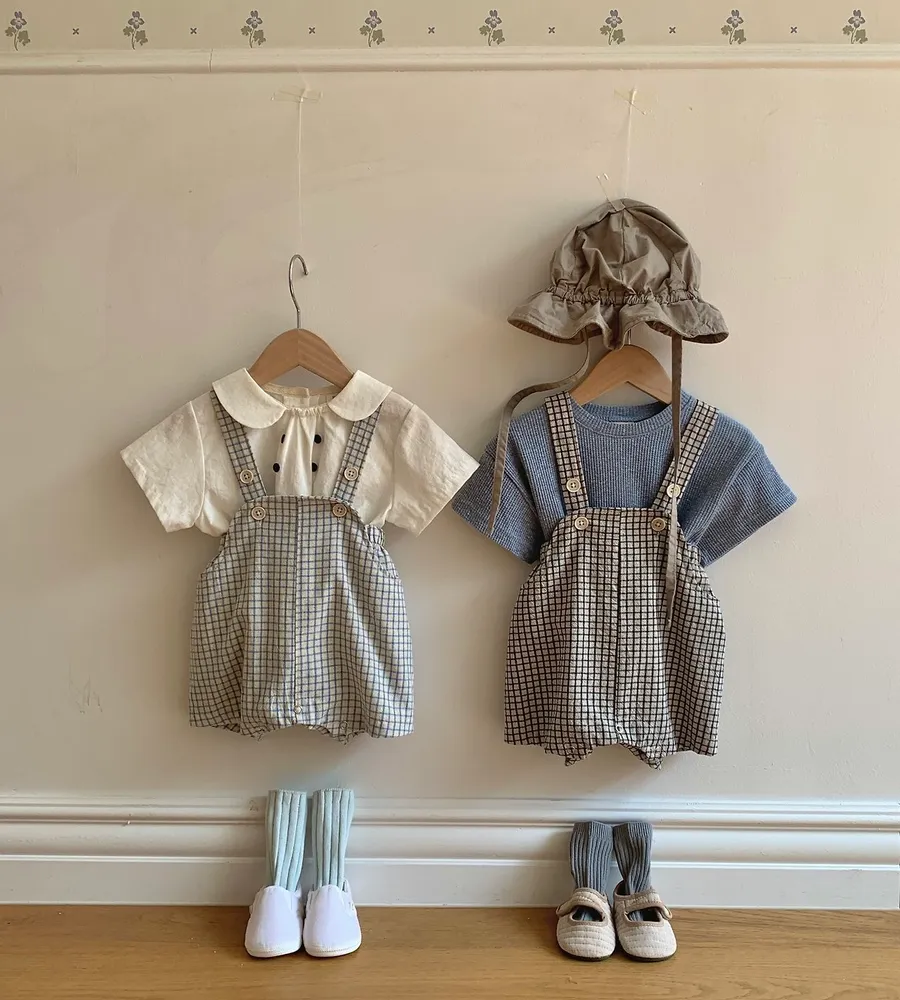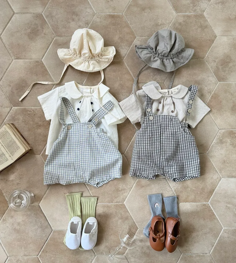 26'夏〡Bebeholic〡格子鈕扣吊帶包屁褲