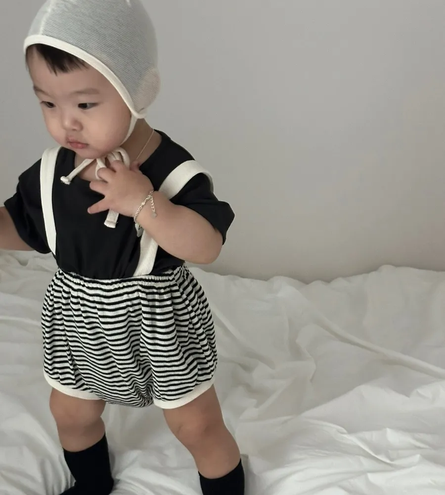 26'夏〡LalaLand〡條紋吊帶南瓜褲-bebe