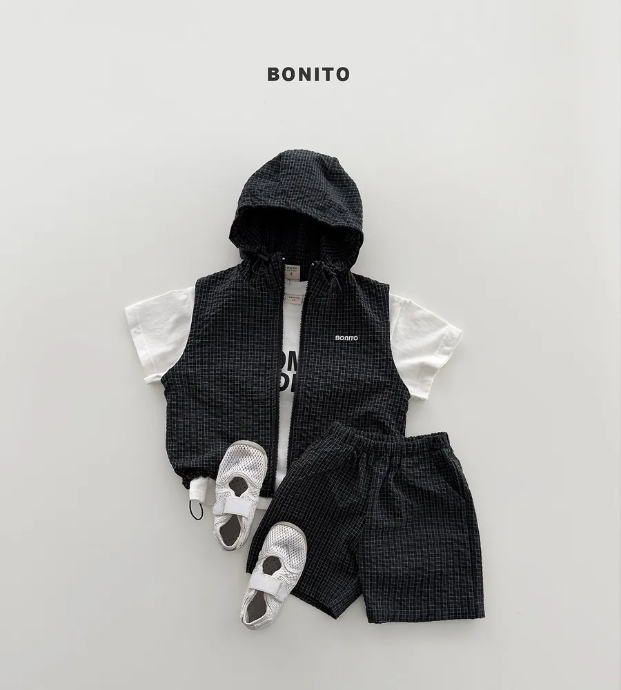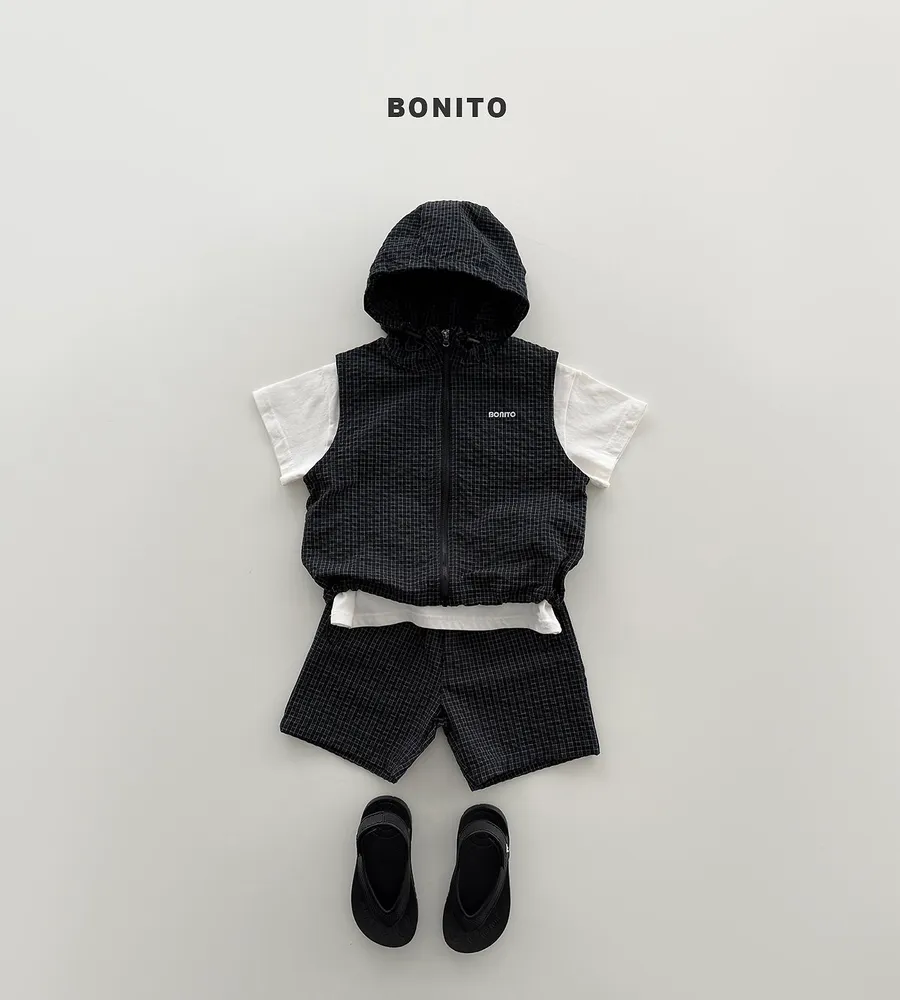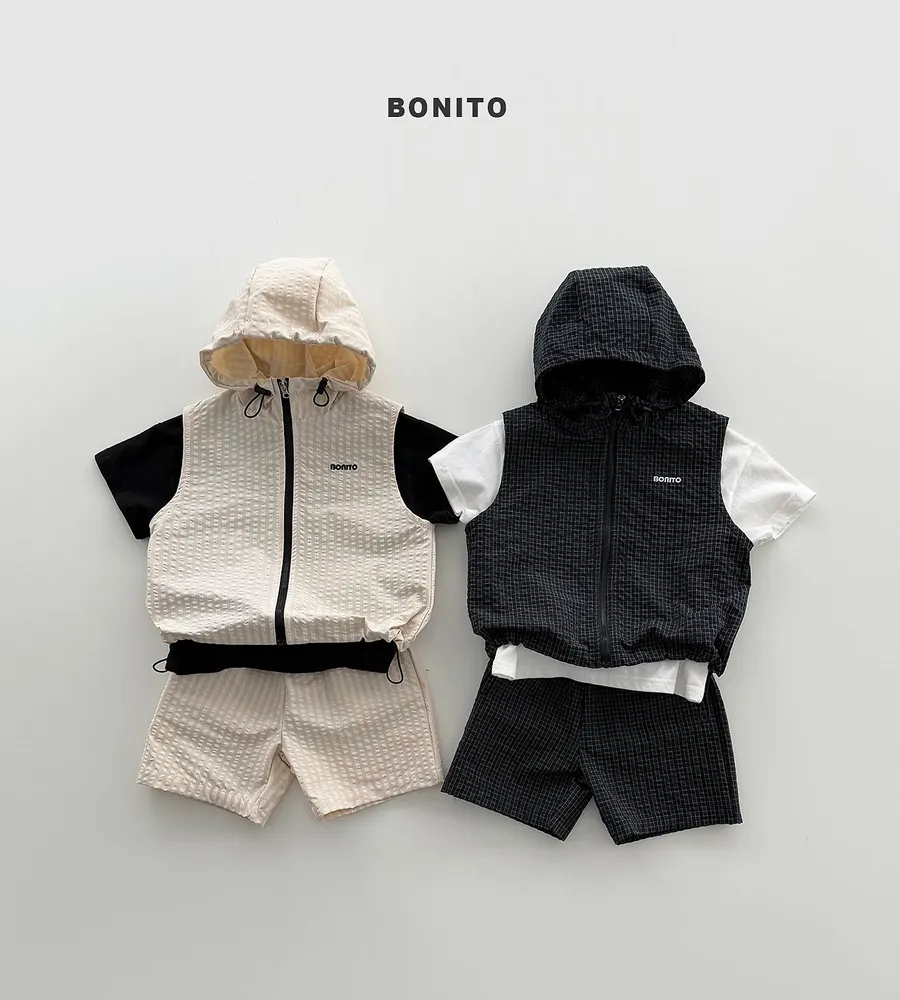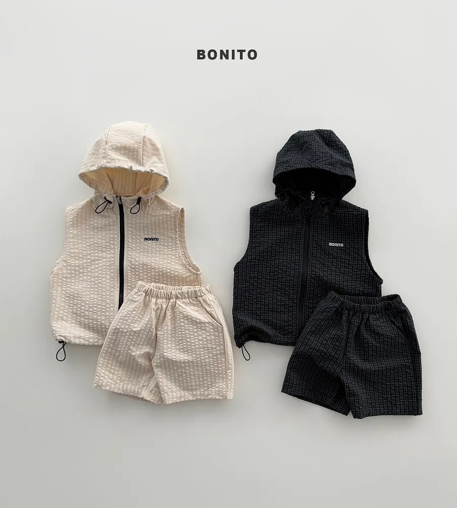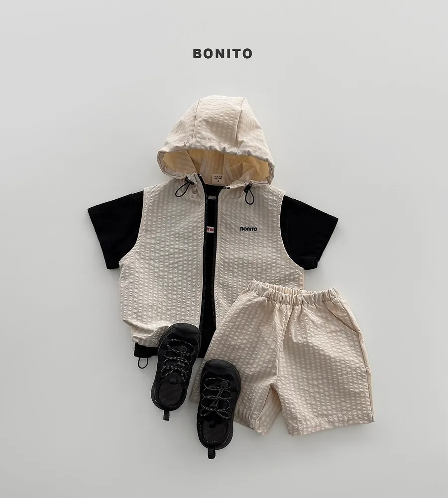 26'夏〡BONITO〡化纖連帽拉鍊背心三件套裝(衣+褲+背心)