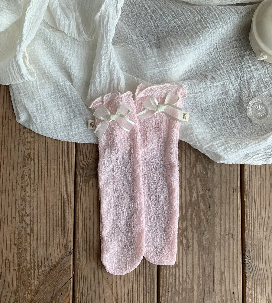 26'夏〡Bebeholic〡蕾絲紋理蝴蝶結膝襪