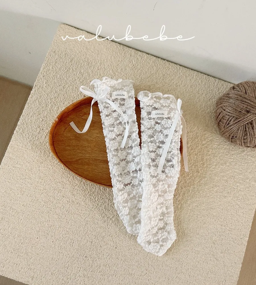 26'夏〡valubebe〡蕾絲緹花蝴蝶結膝襪