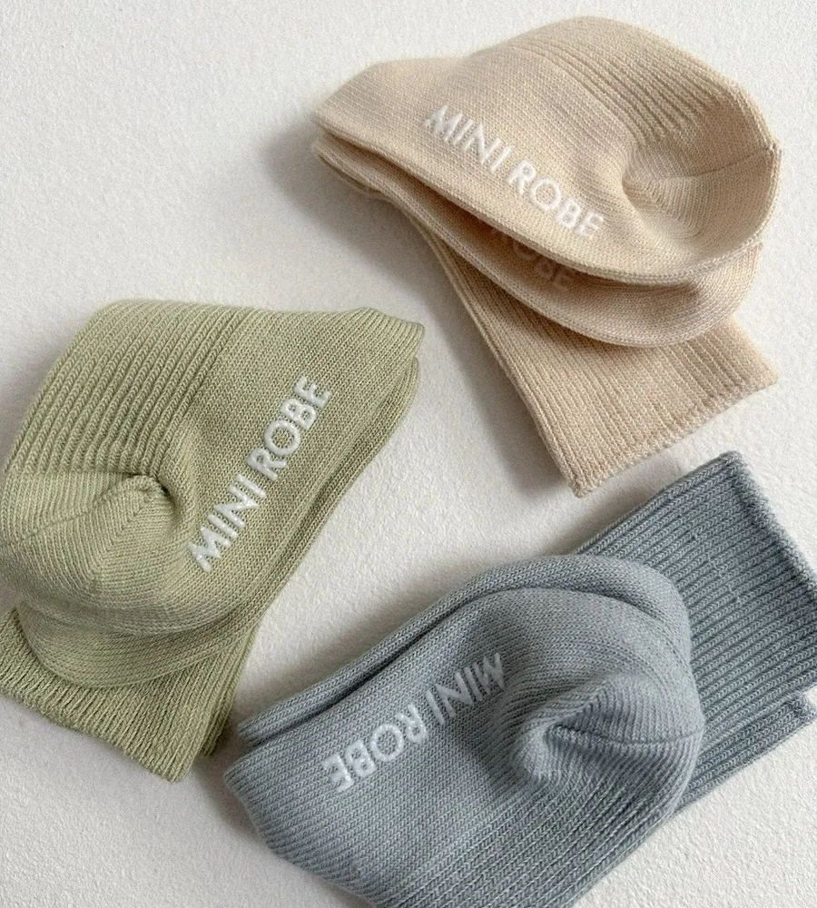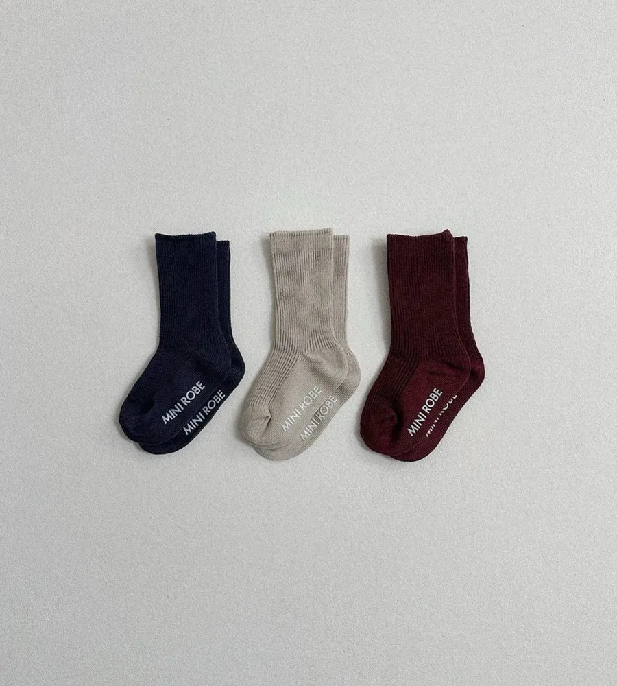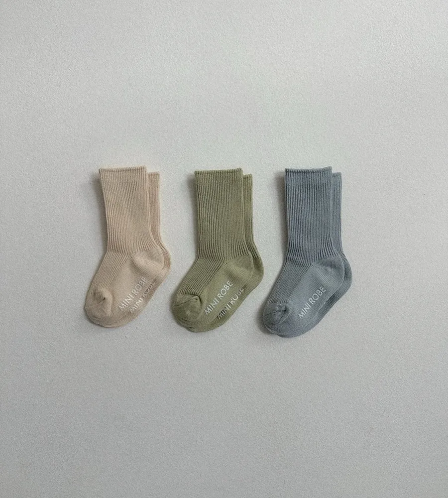 26'春〡minirobe〡春季配色羅紋防滑襪三雙組合